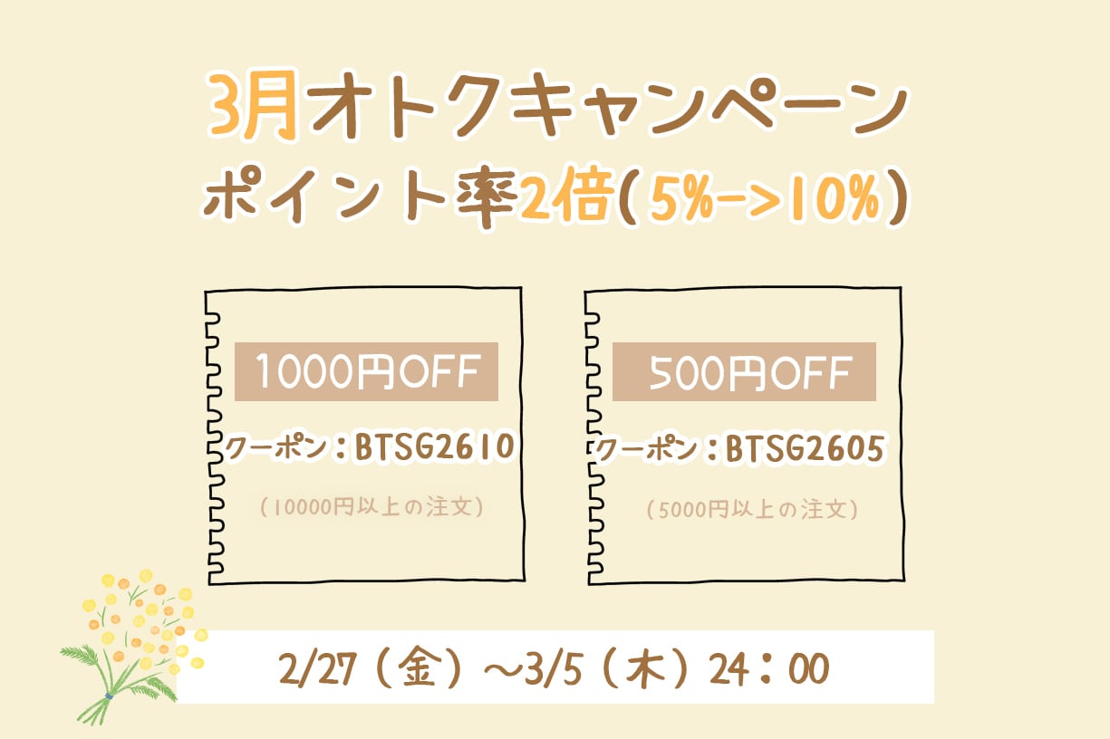 500円OFFクーポン:BTSG2605🐻
