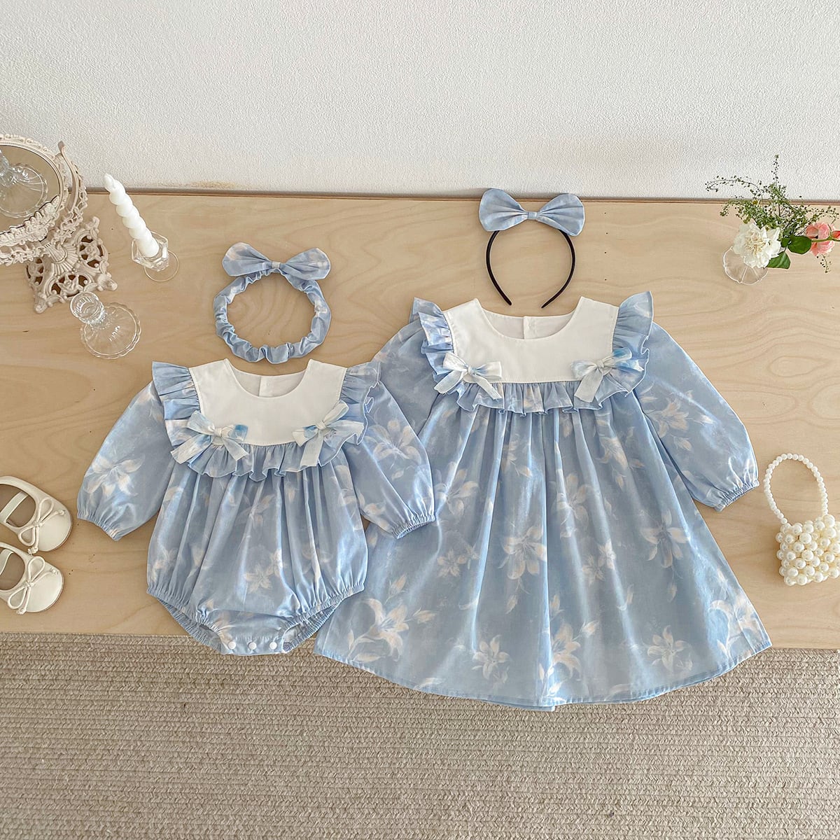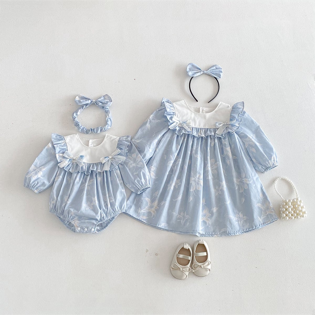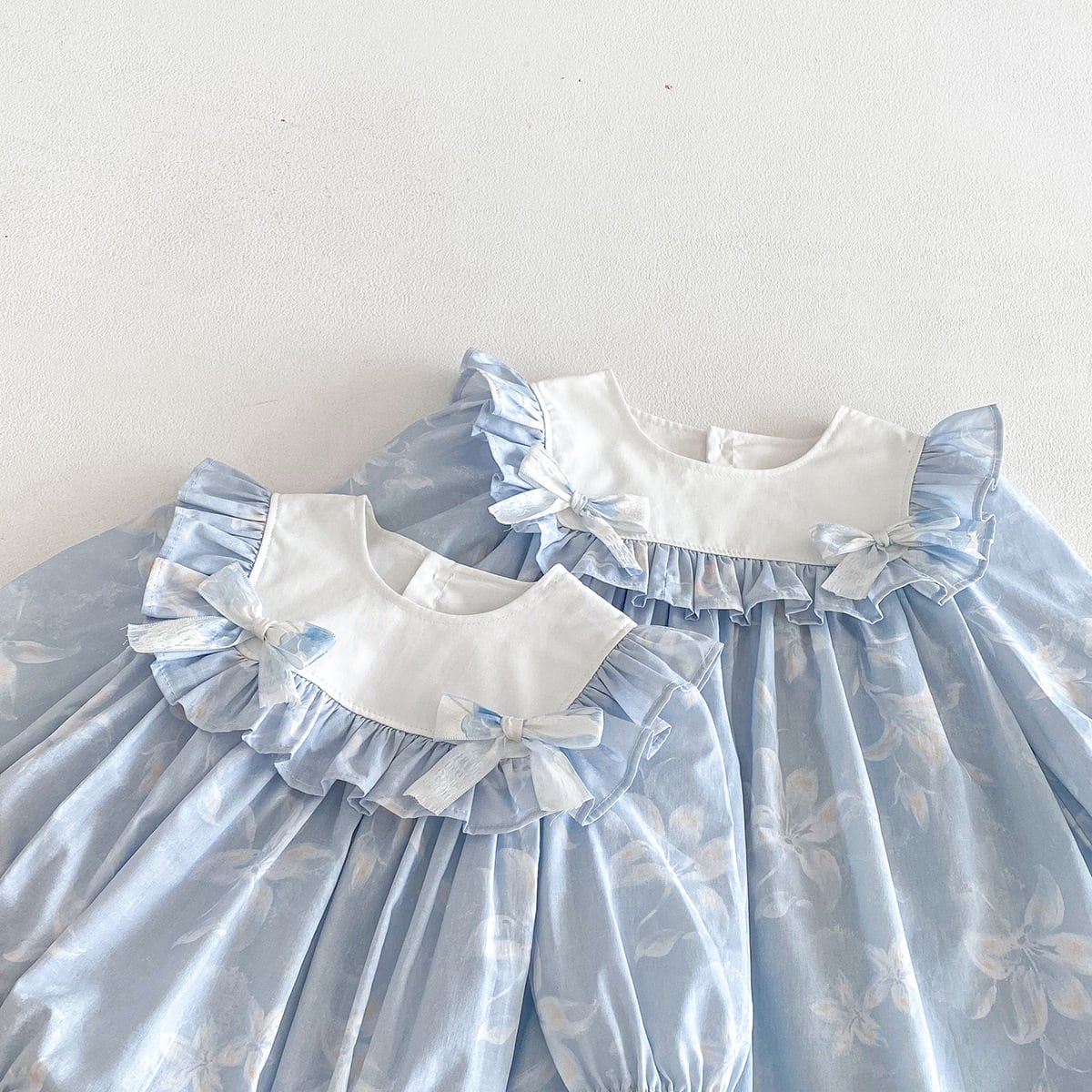 【姉妹服】蝶結びブルーロンパース/ワンピース