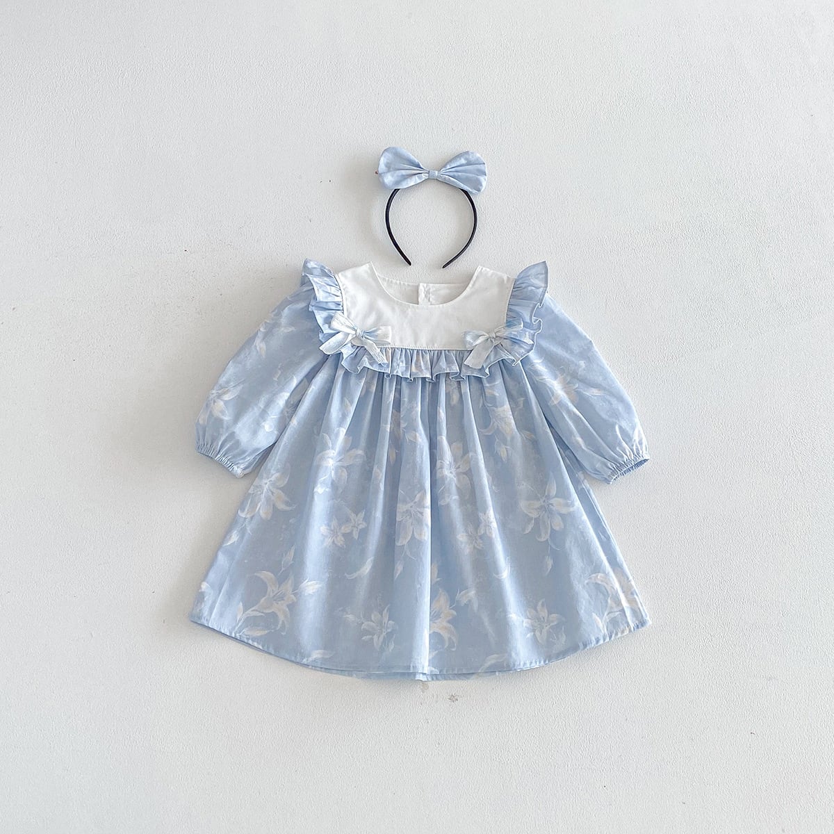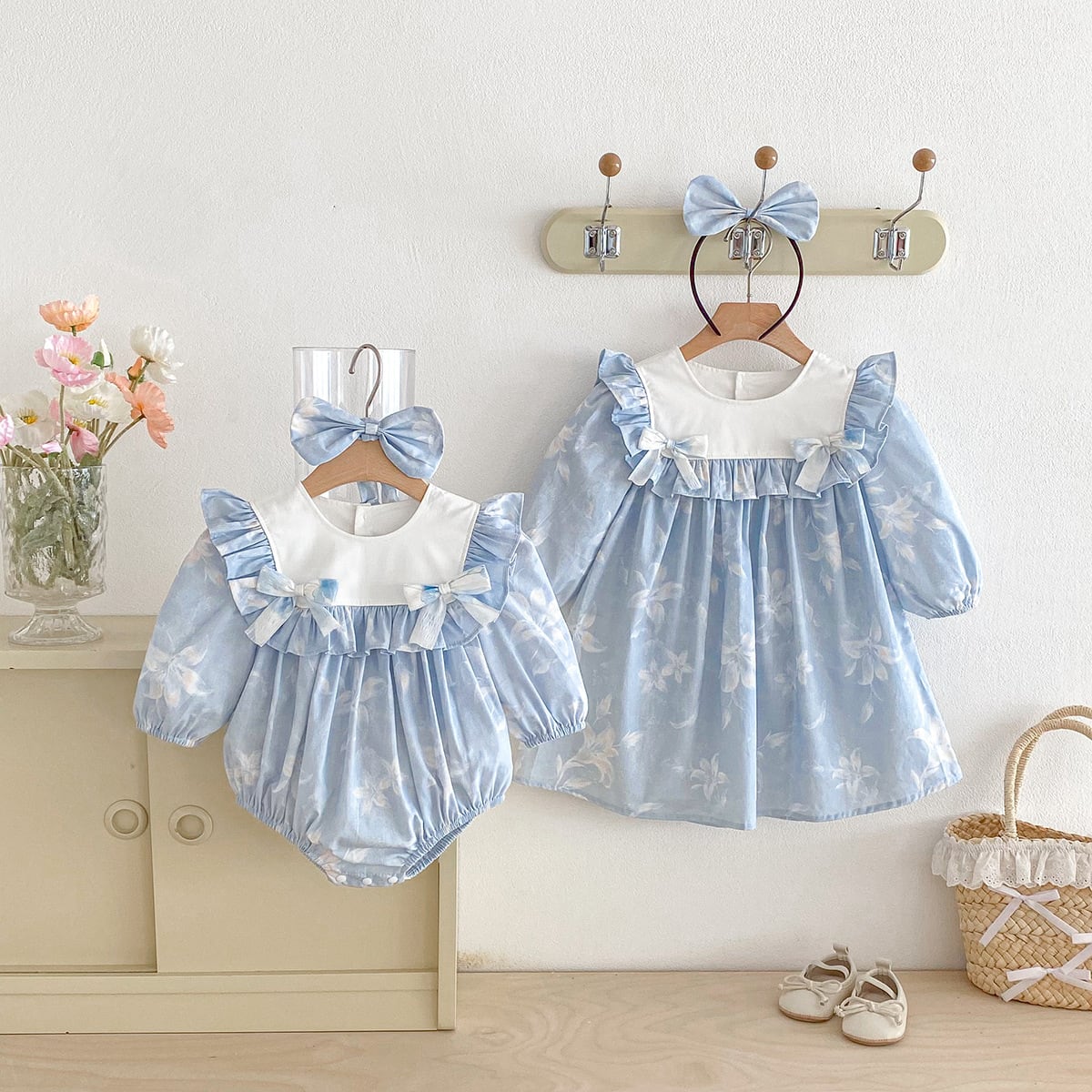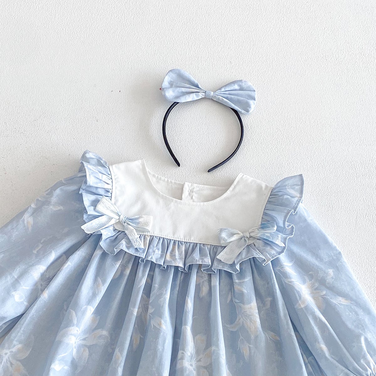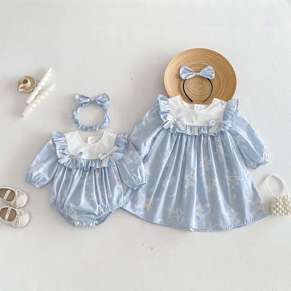 【姉妹服】蝶結びブルーロンパース/ワンピース