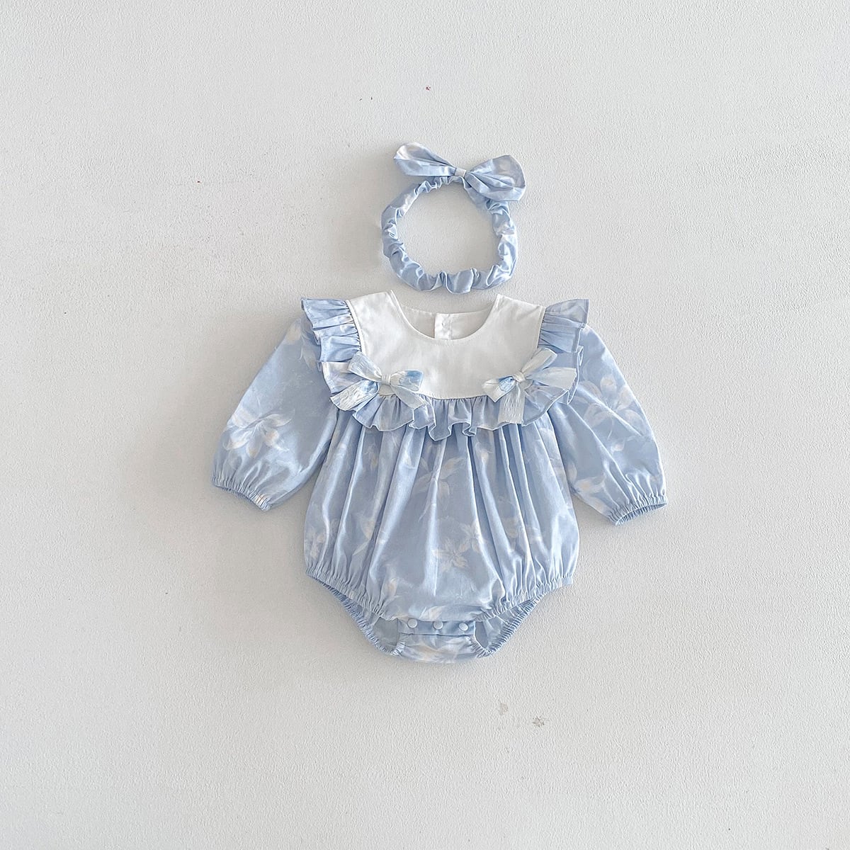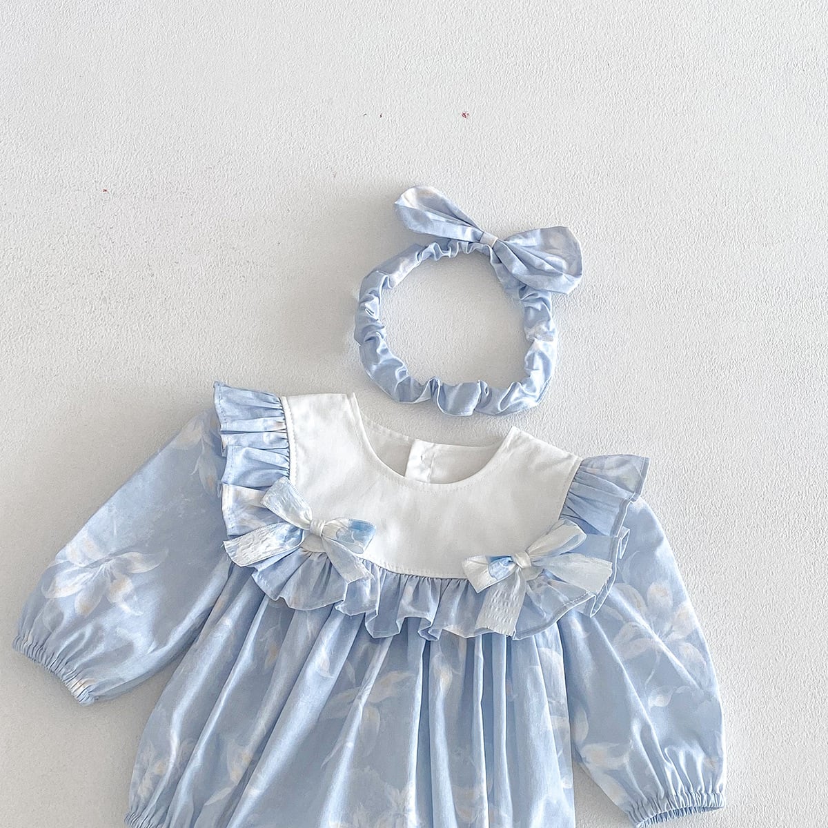 • 【BABY】春新作 蝶結び付きフリルロンパース