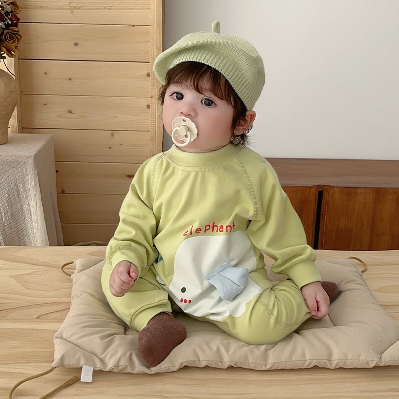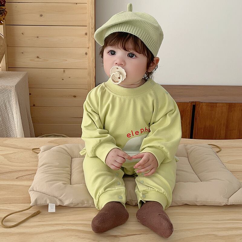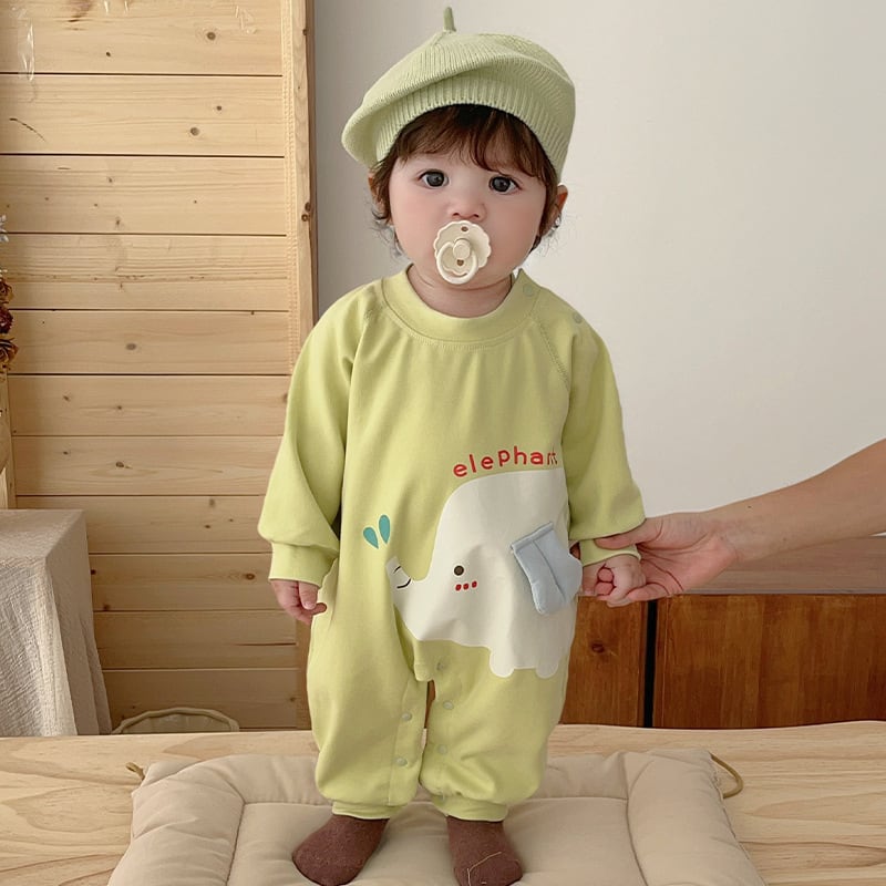 【BABY】ゾウ柄グリーンロンパース