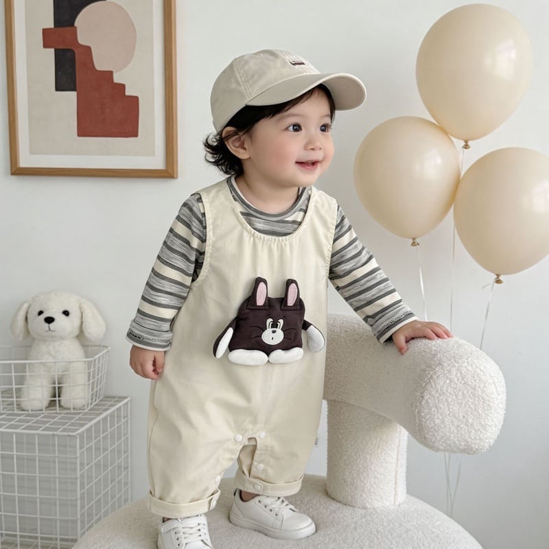 【BABY】2026新作 ベージュサロペット&シャツ