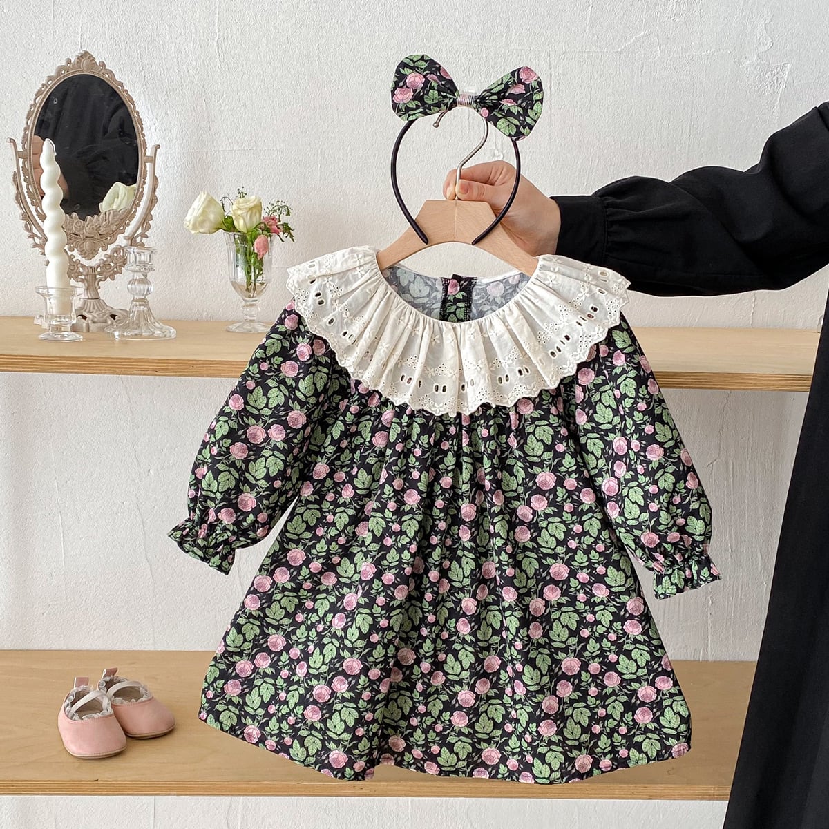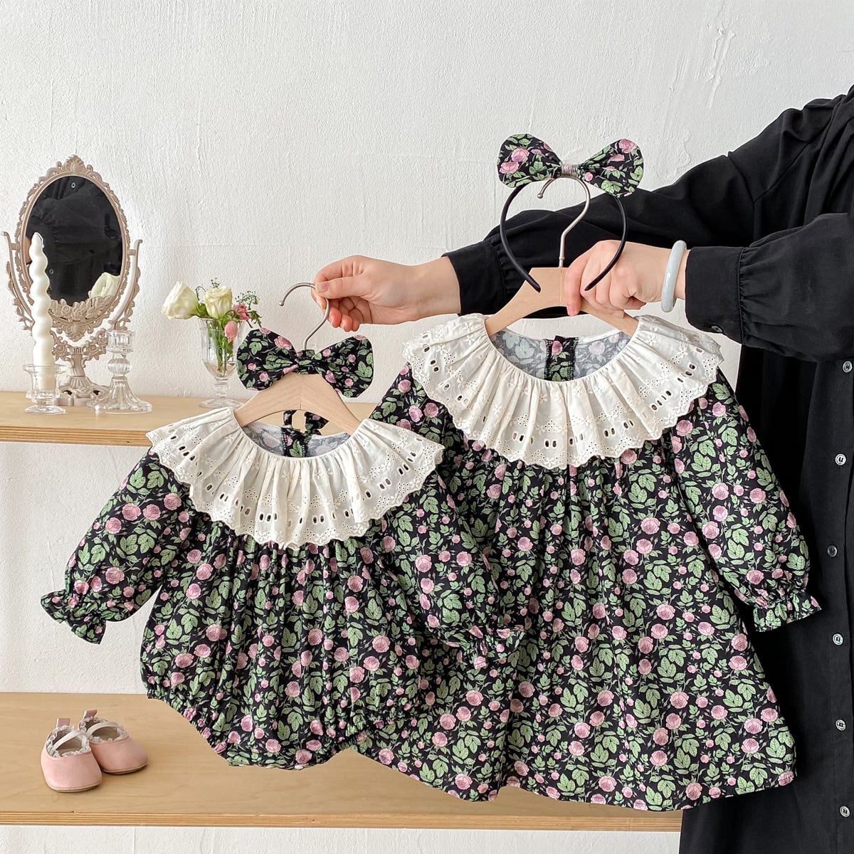 【姉妹服】ローズブラックロンパース/ワンピース