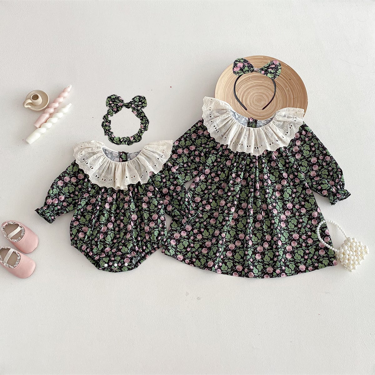 • 【姉妹服】春新作 フラワー柄ロンパース/ワンピース