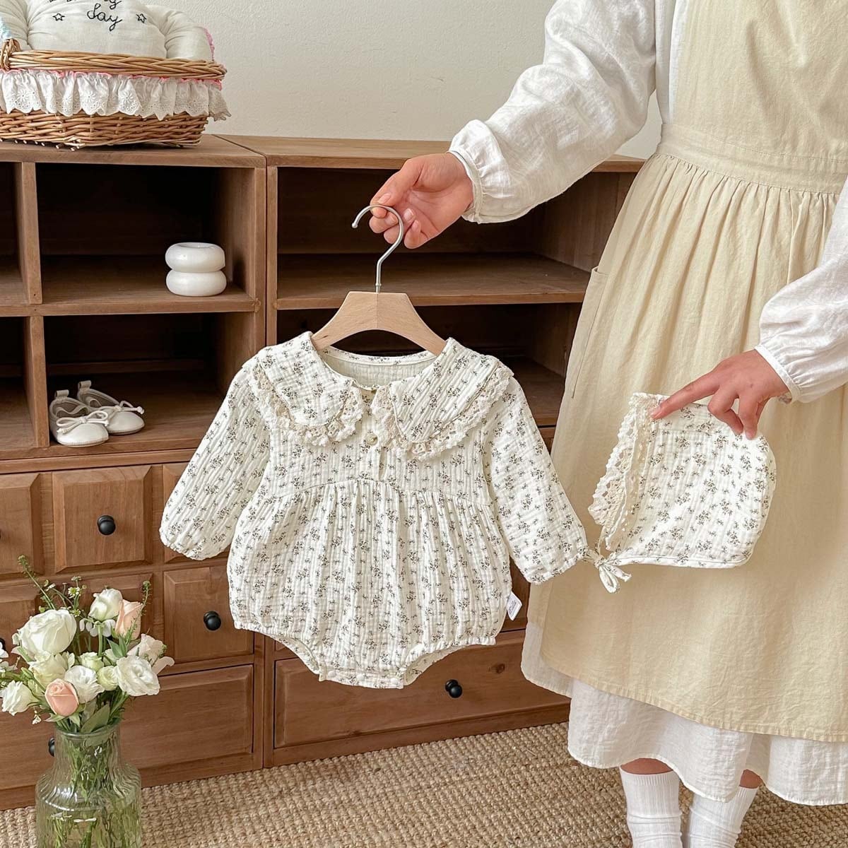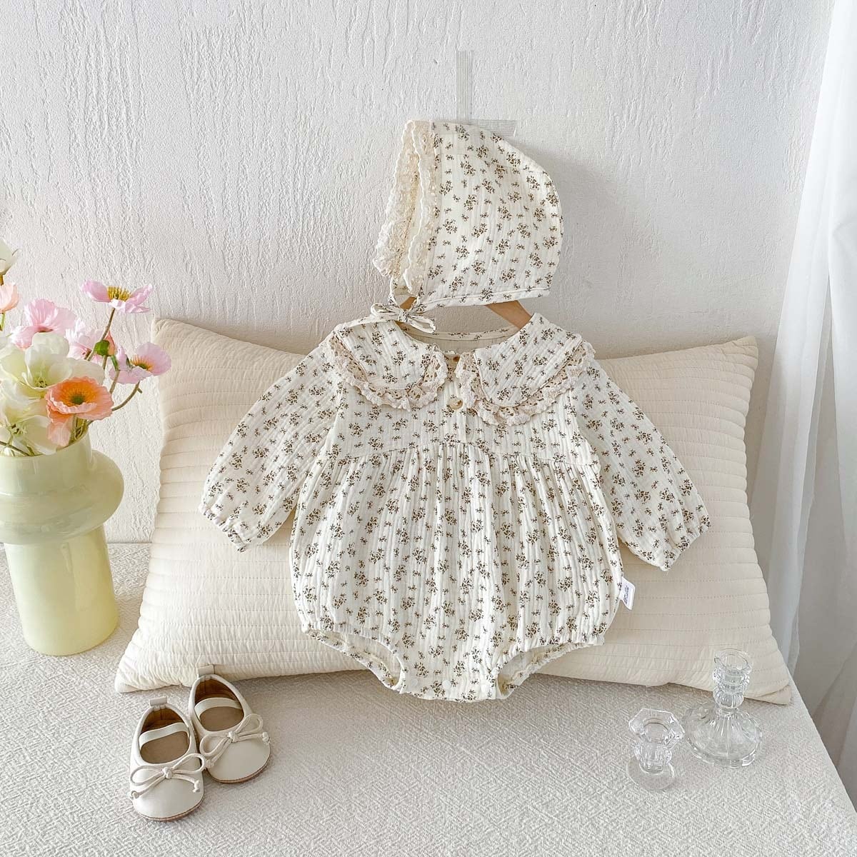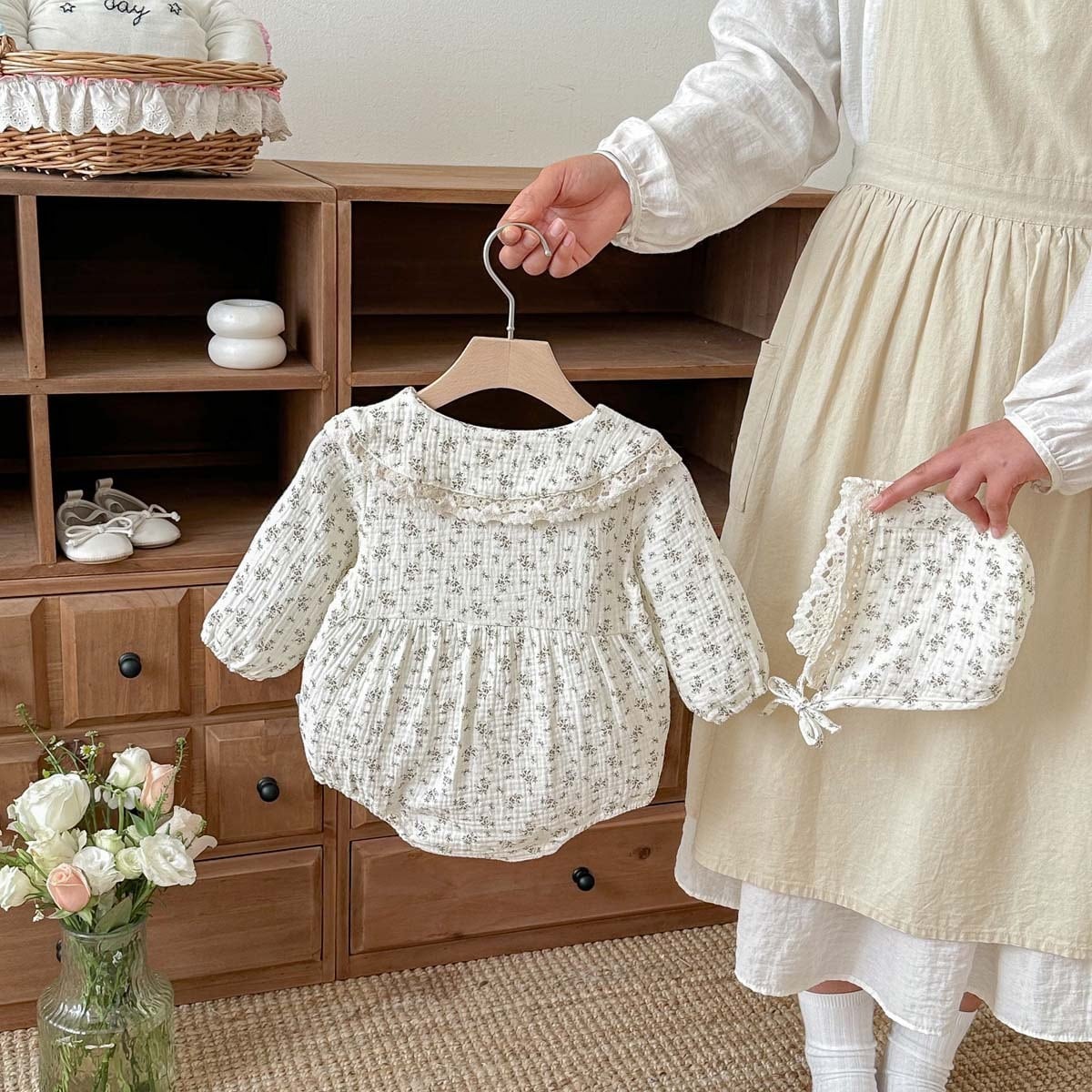 【BABY】2026新作 フラワー柄ロンパース&帽子
