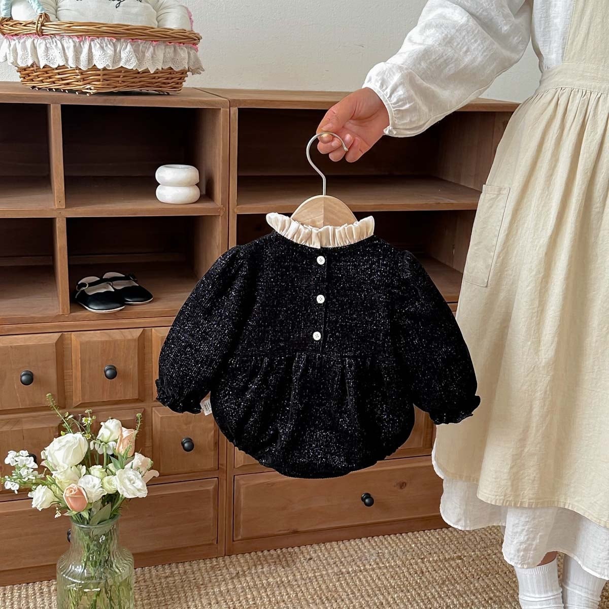 【BABY】2026新作 蝶結びブラックロンパース