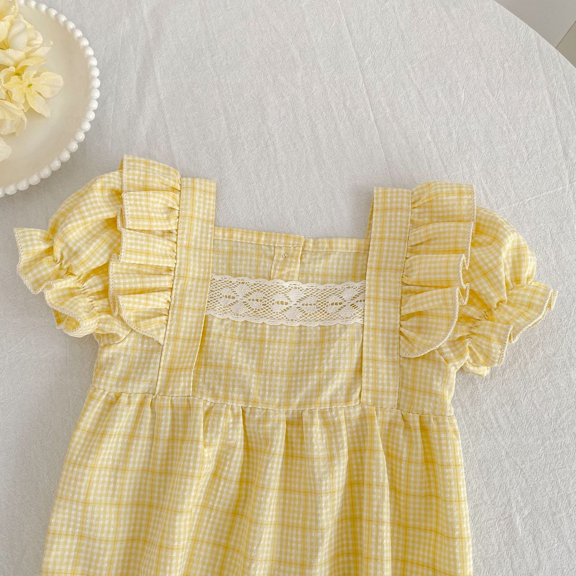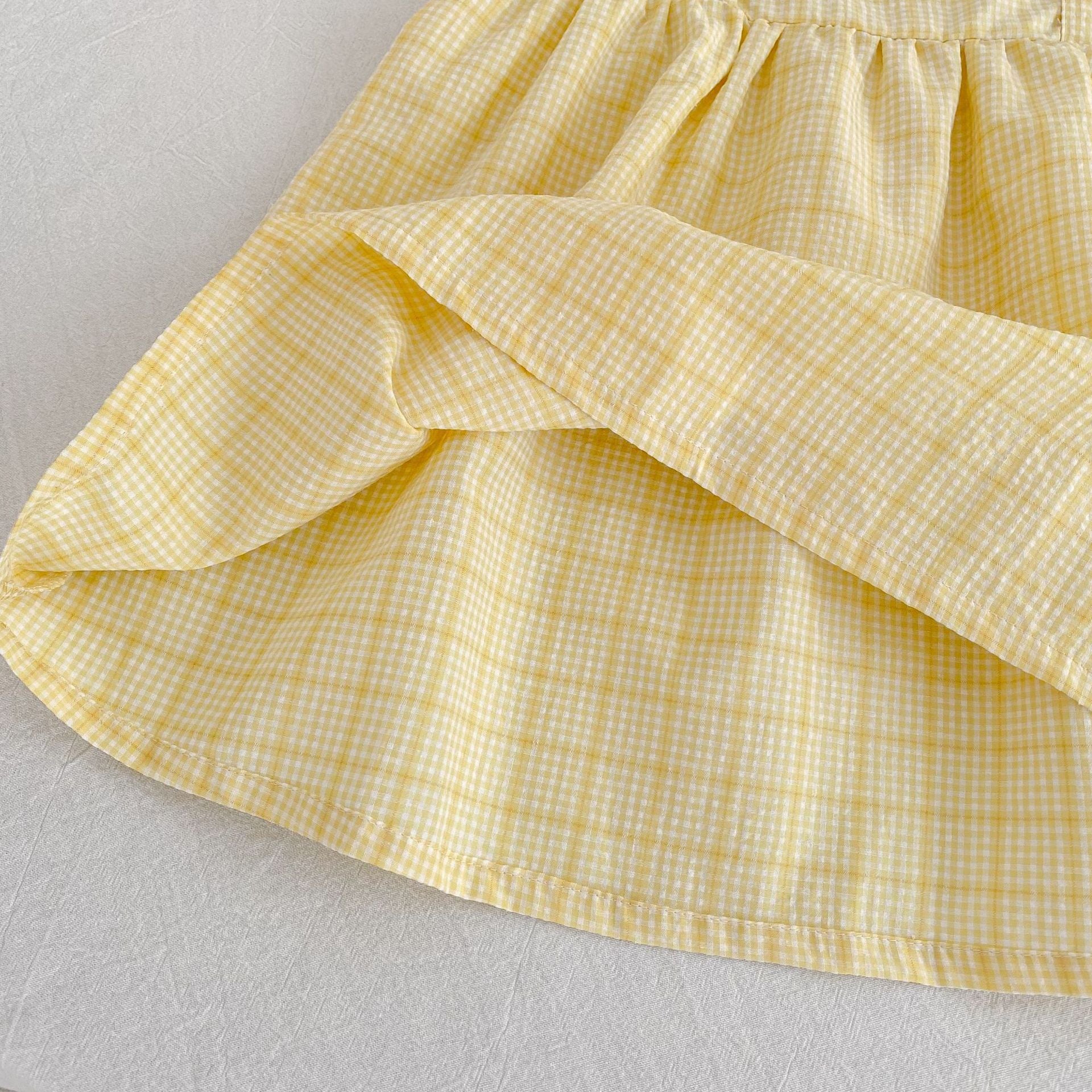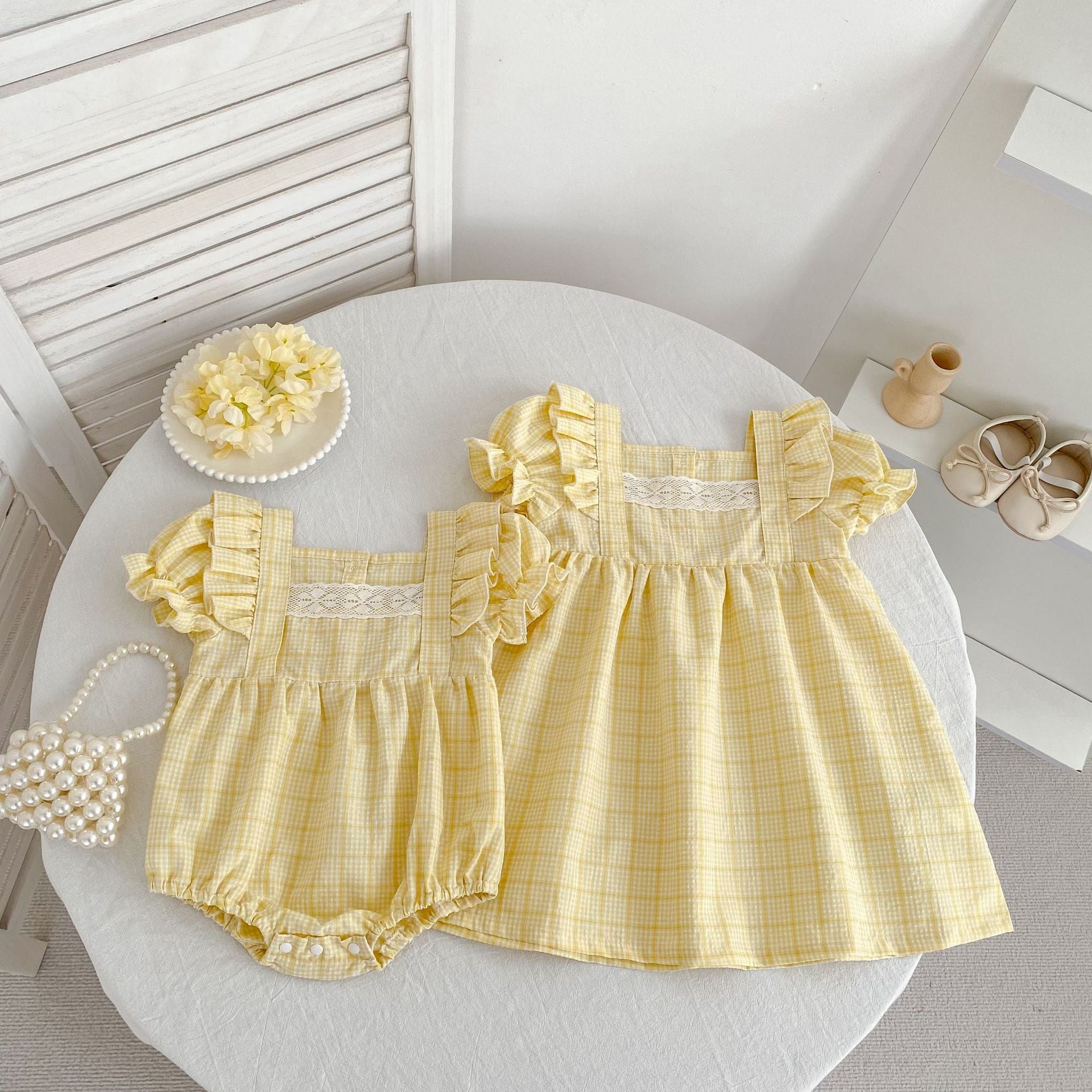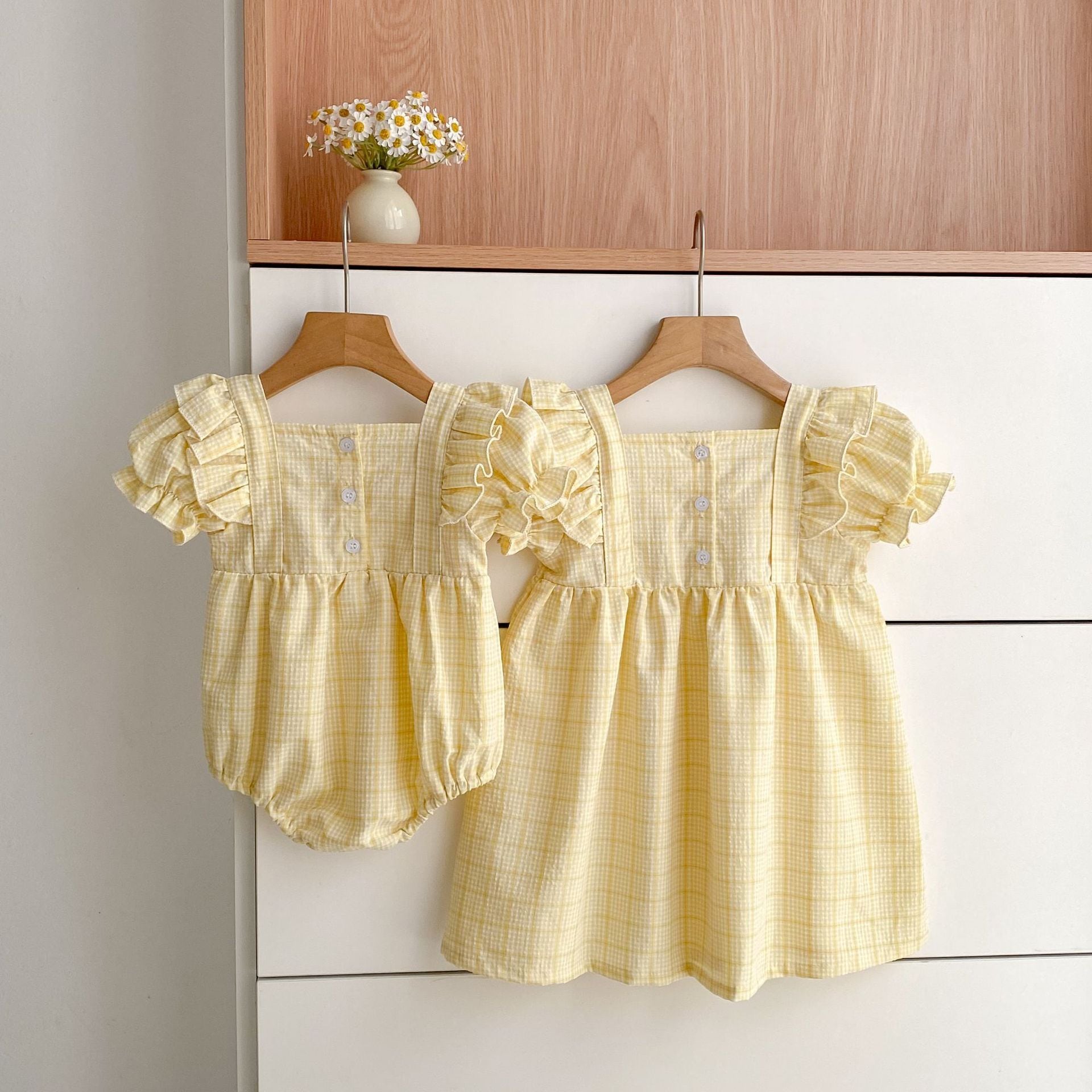 【姉妹服】イエローチェックロンパース/ワンピース