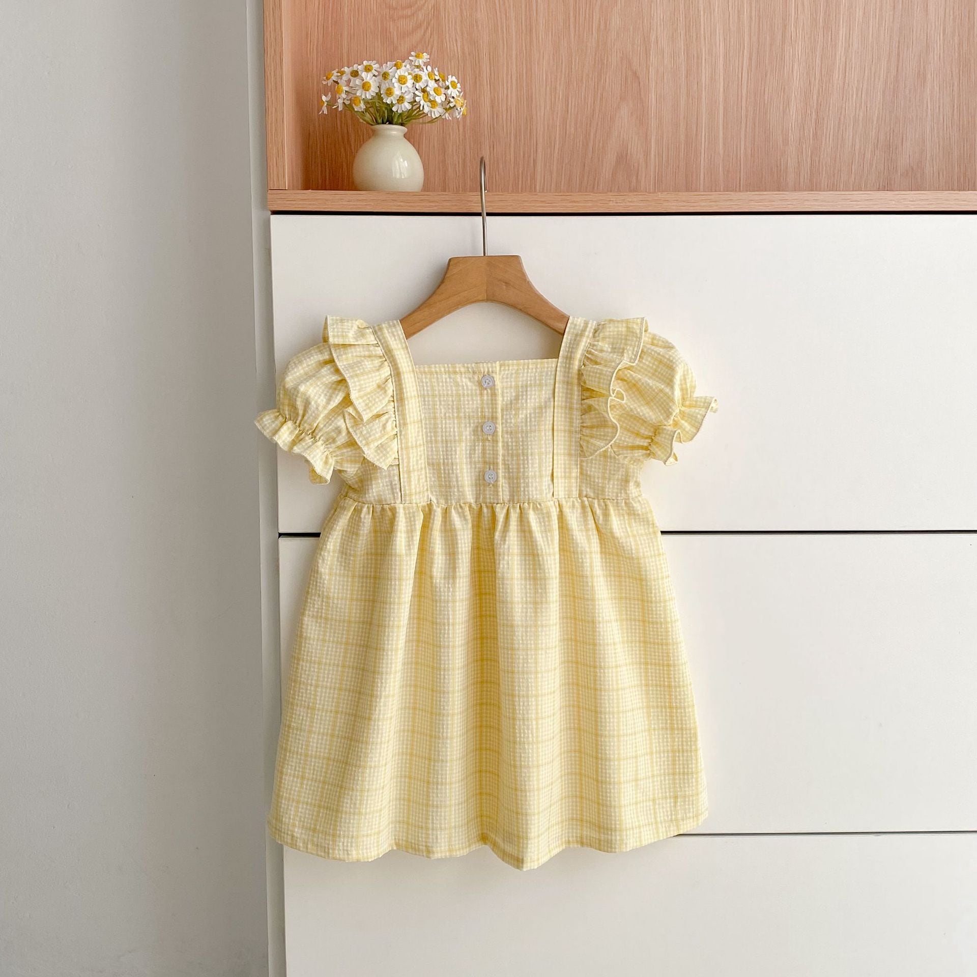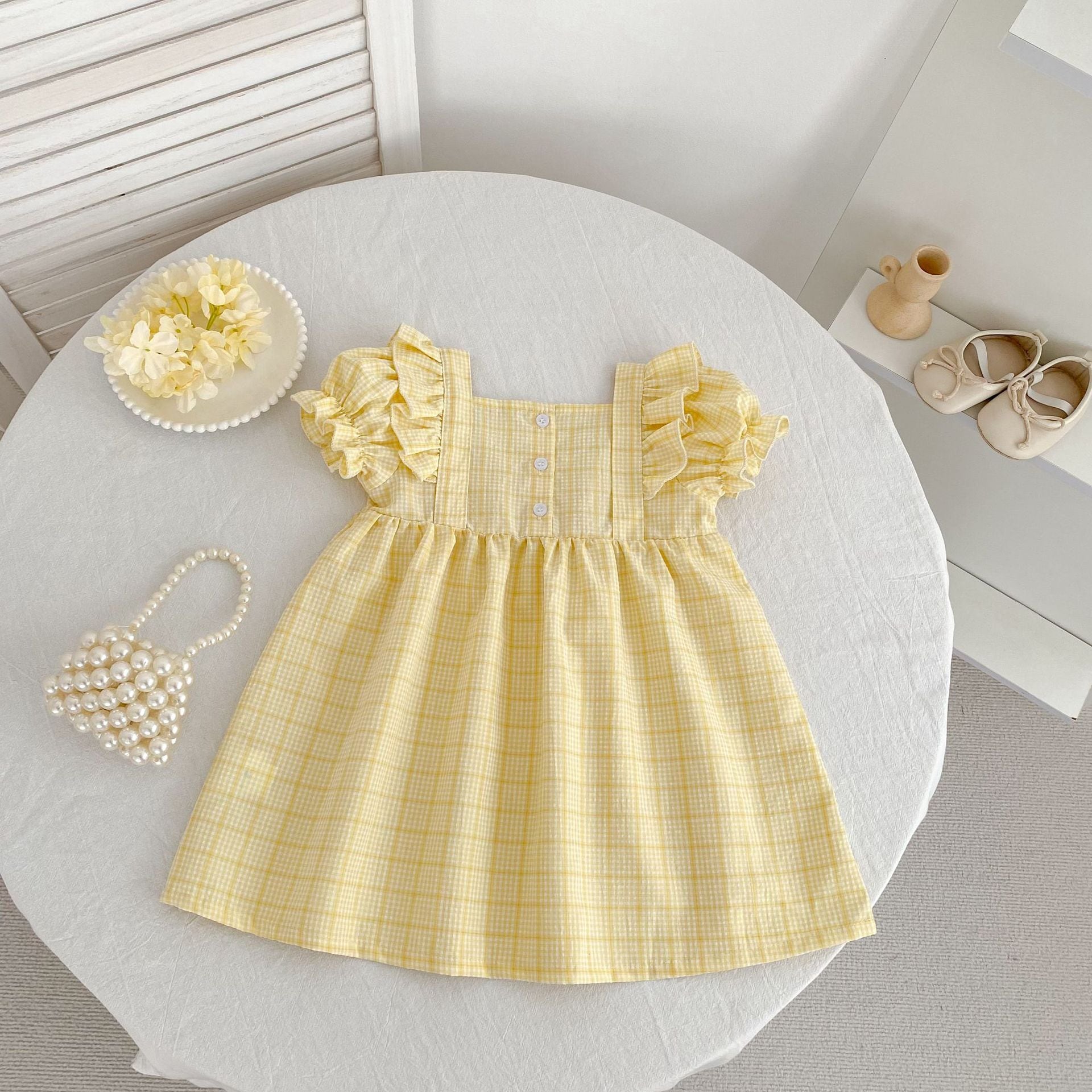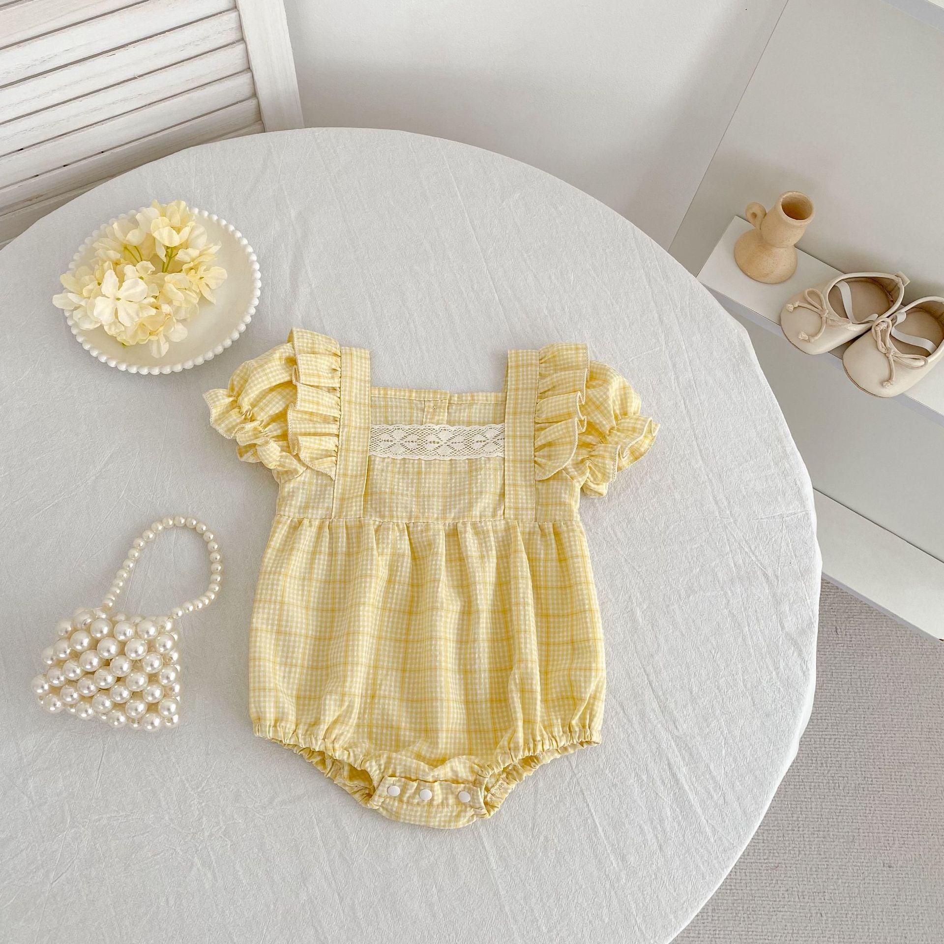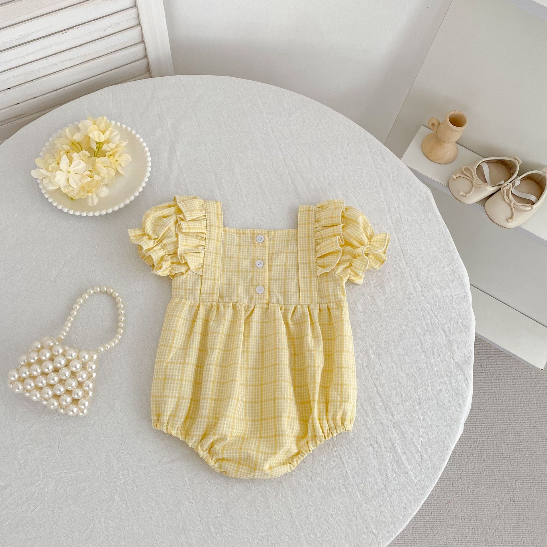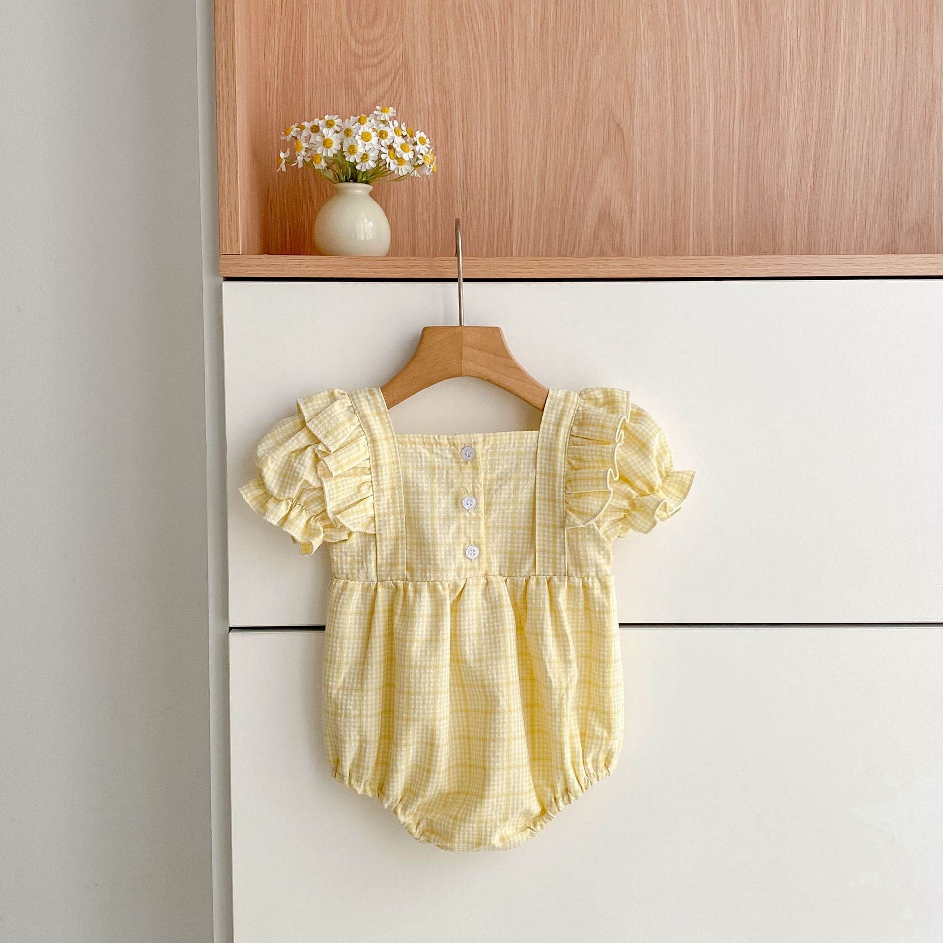 【姉妹服】イエローチェックロンパース/ワンピース