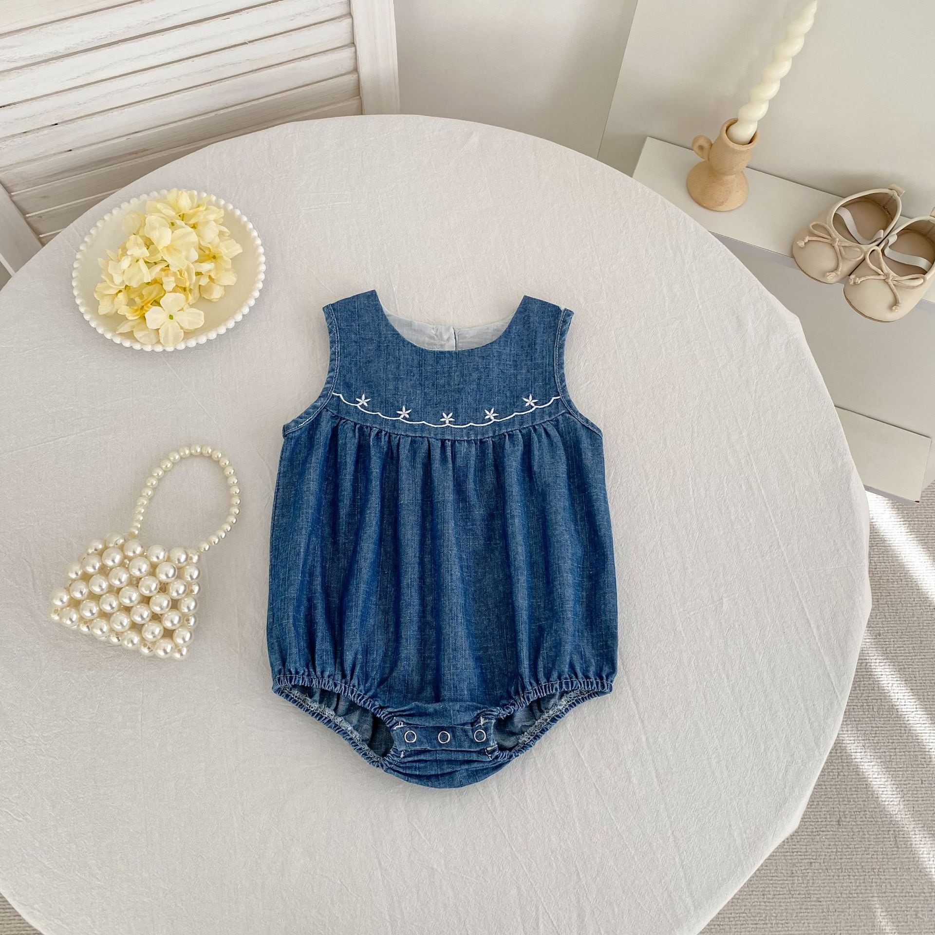 【姉妹服】デニムノースリーブロンパース/ワンピース