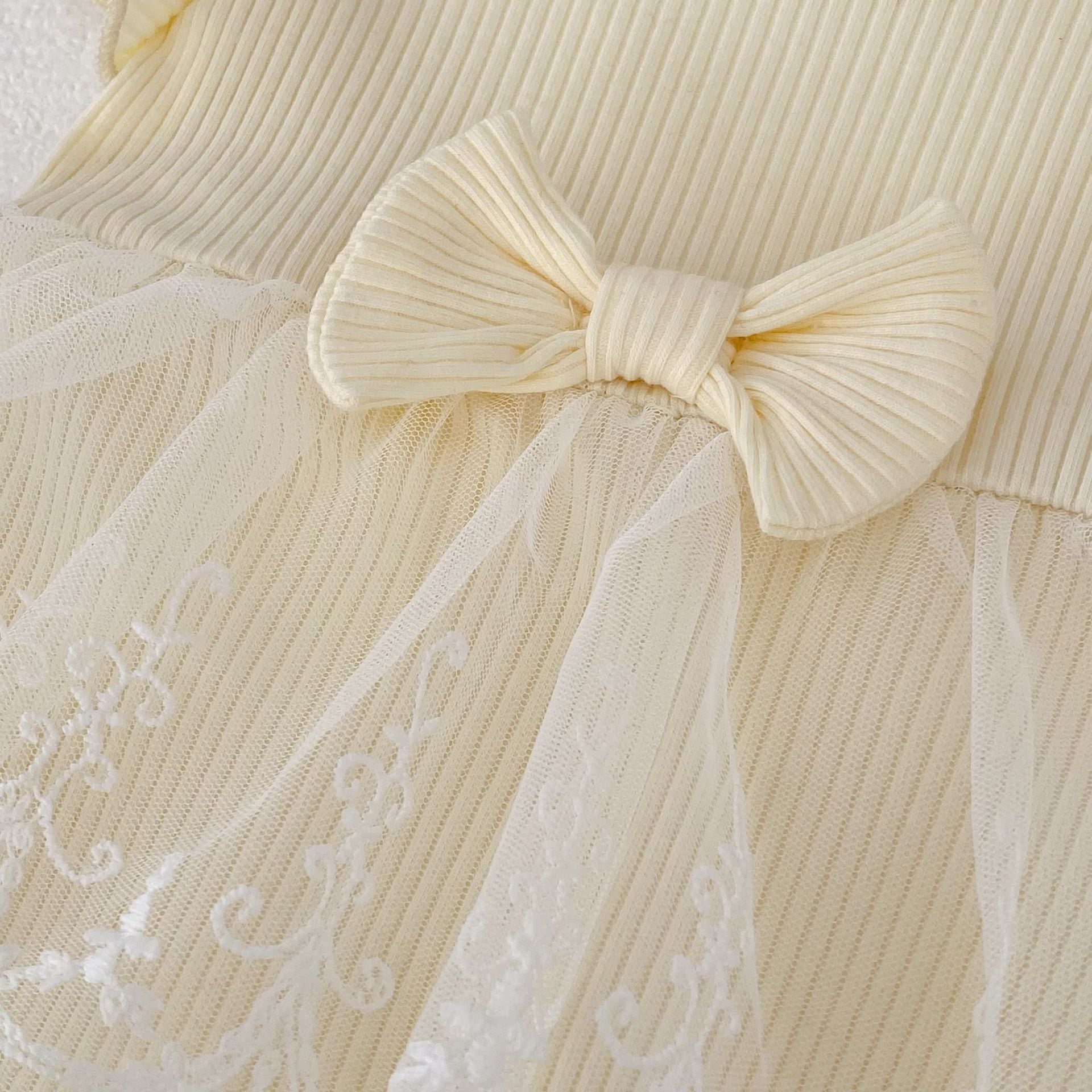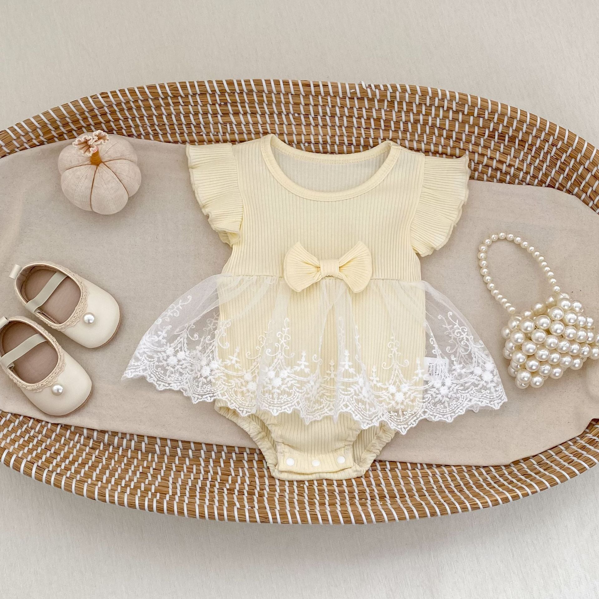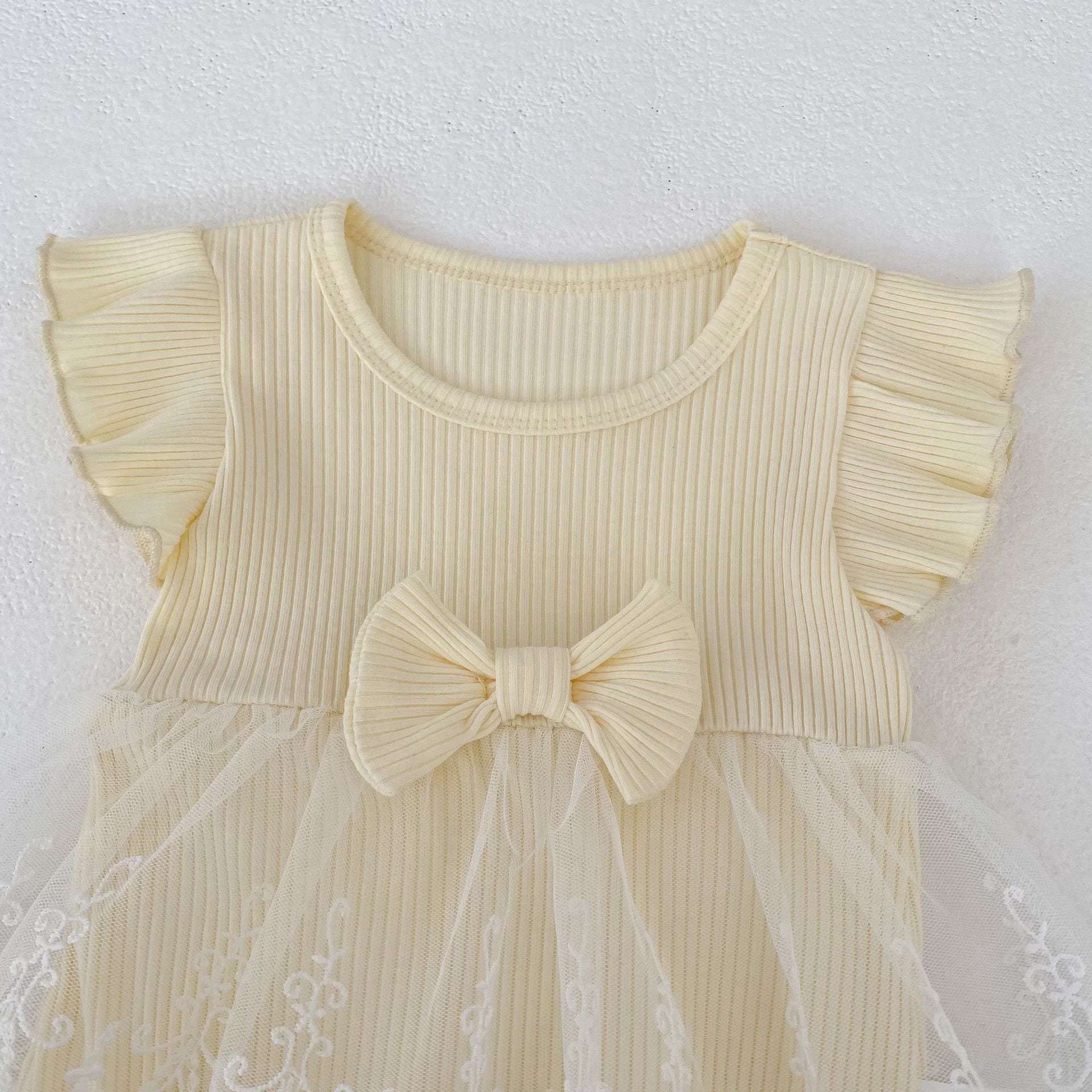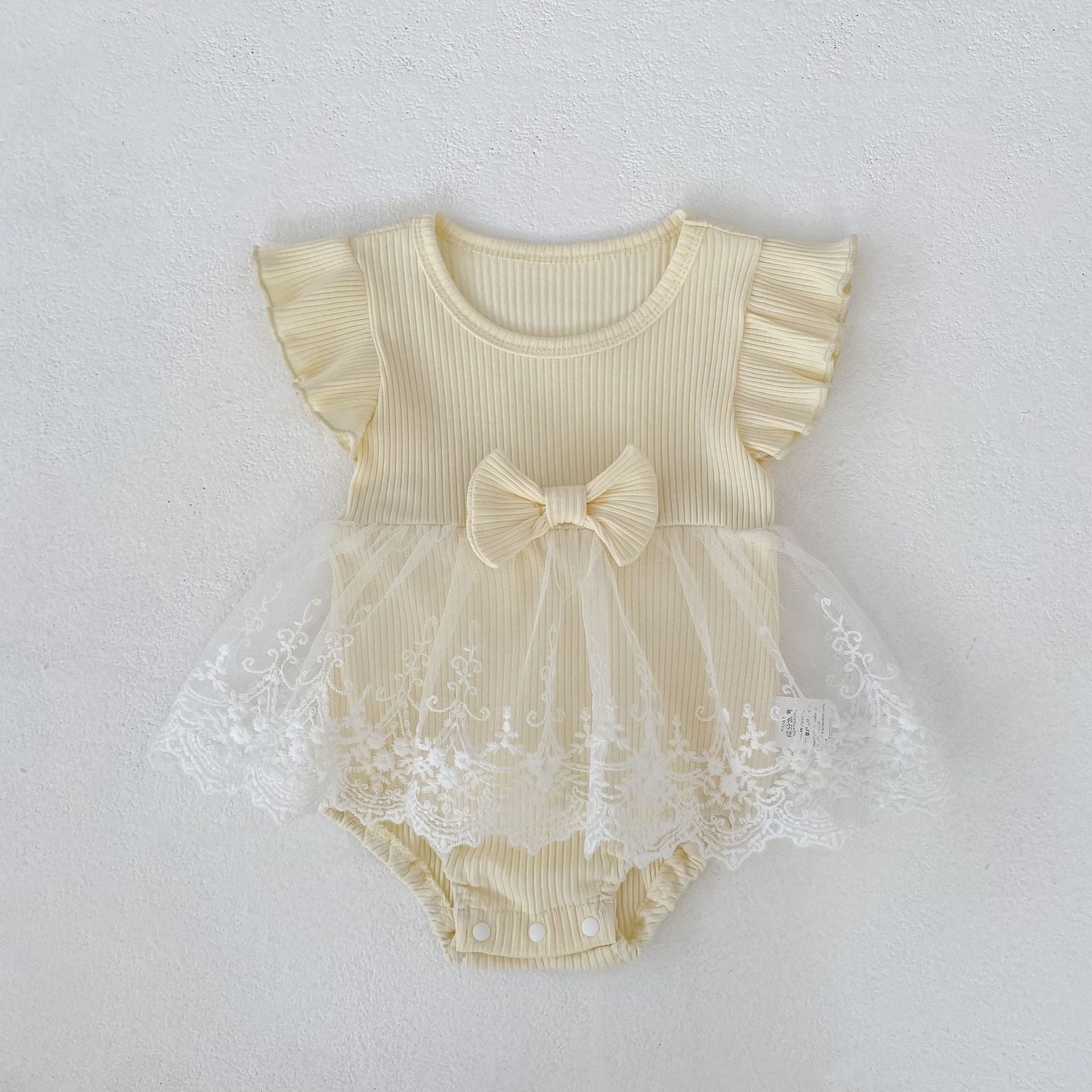 【BABY】クリーム蝶結びメッシュロンパース