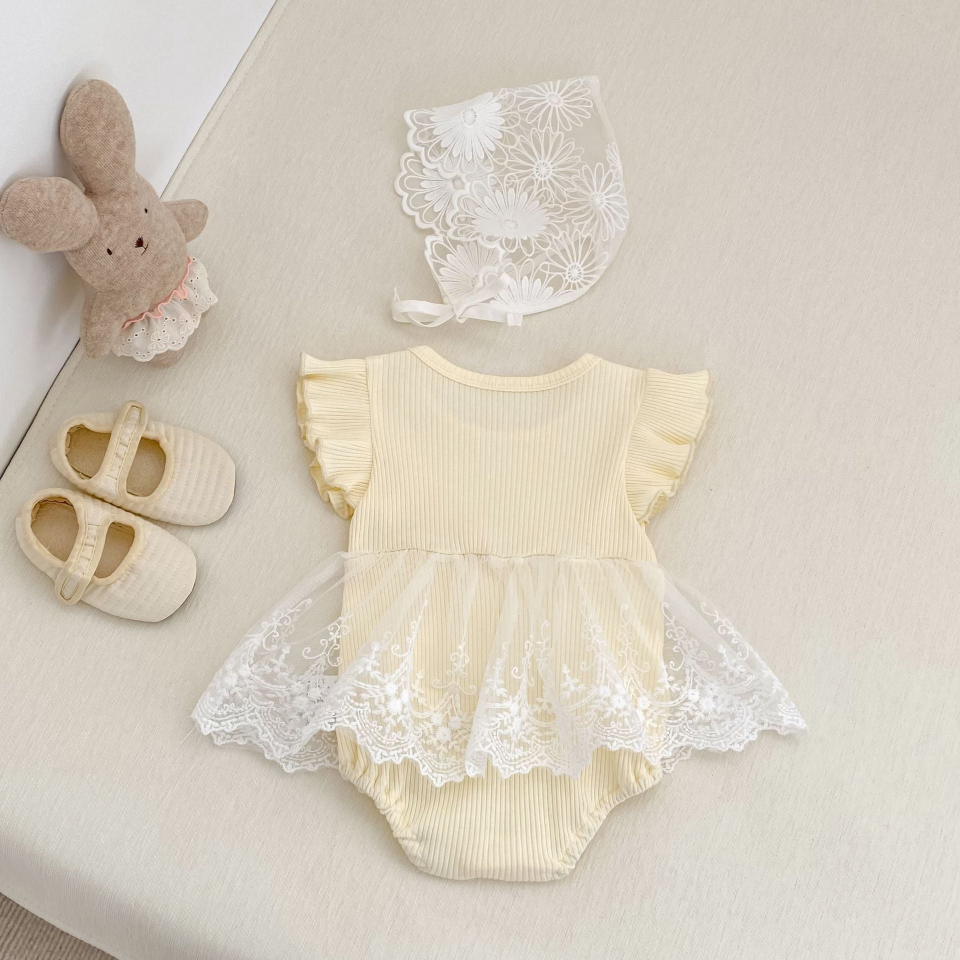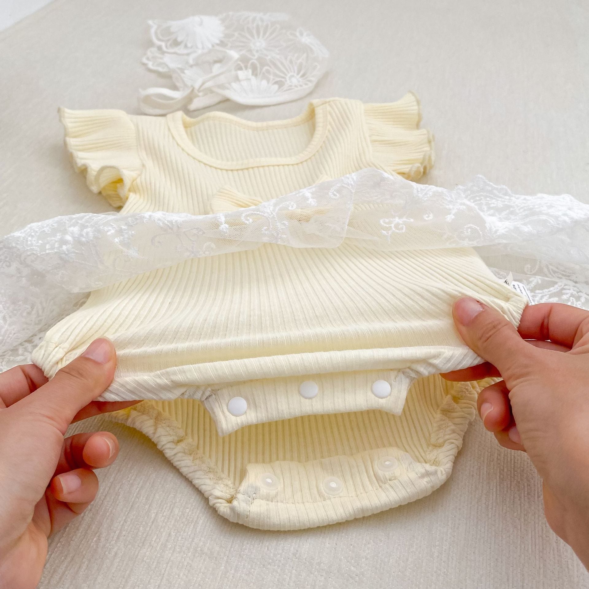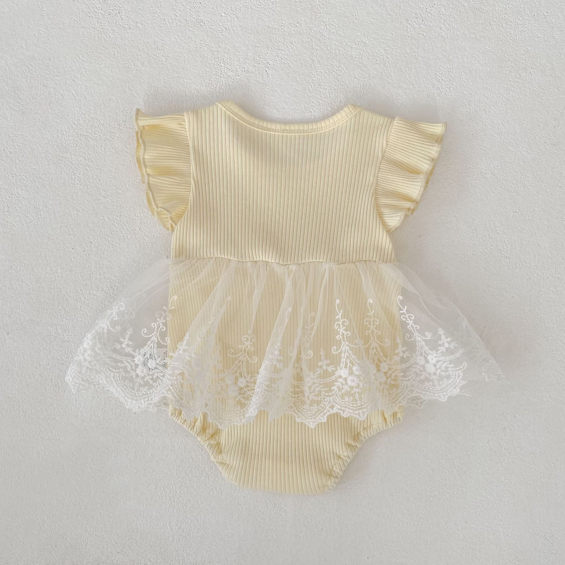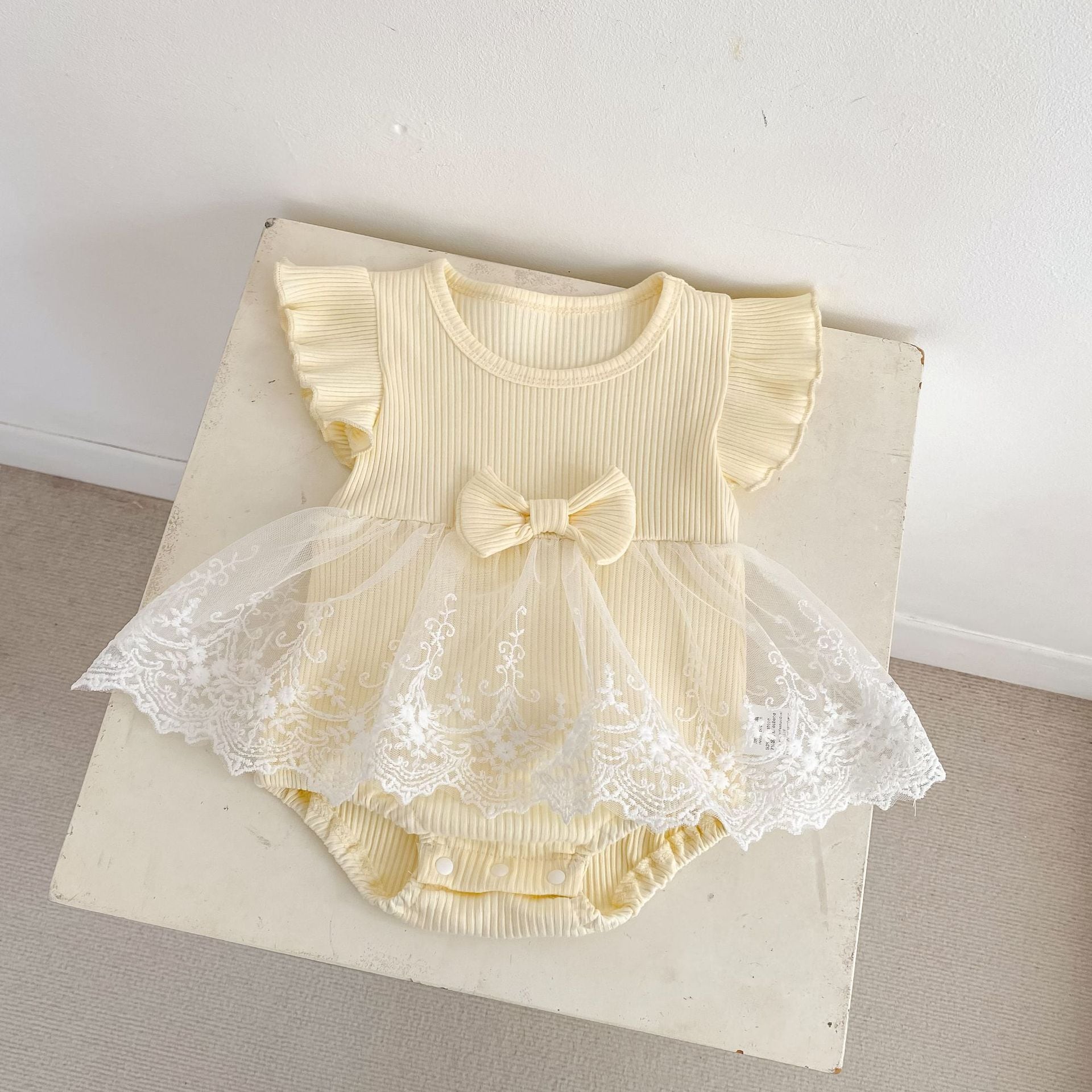 【BABY】クリーム蝶結びメッシュロンパース