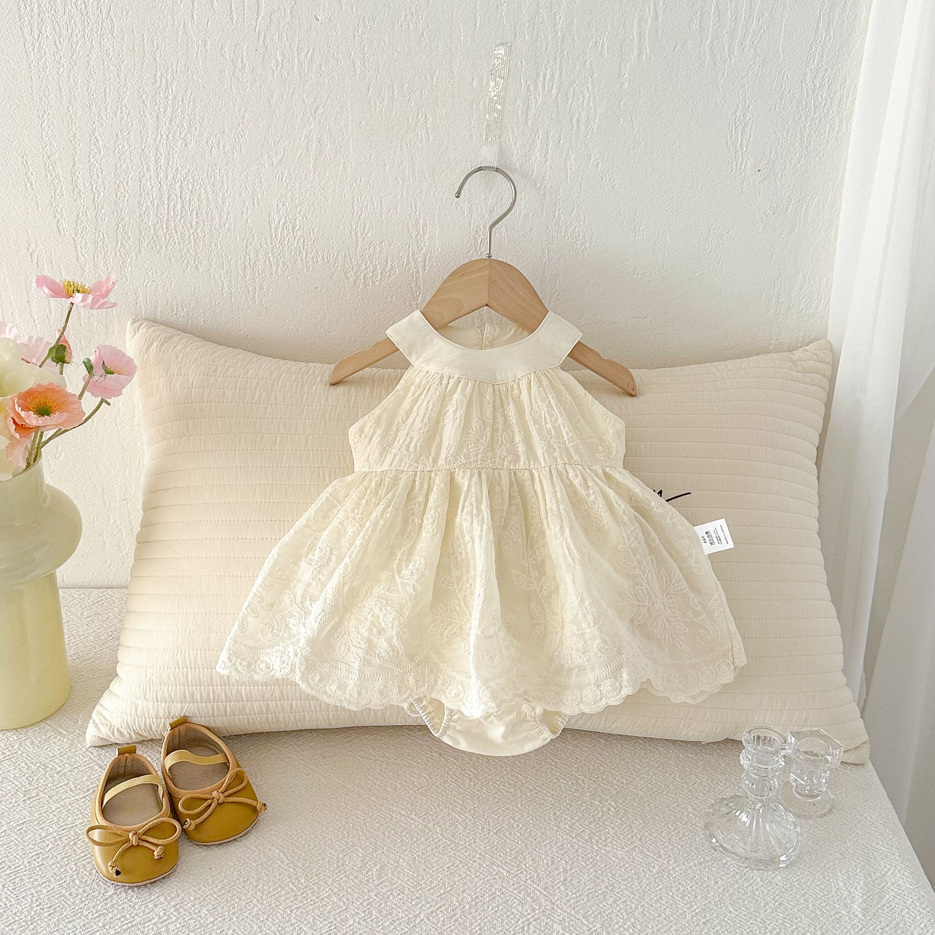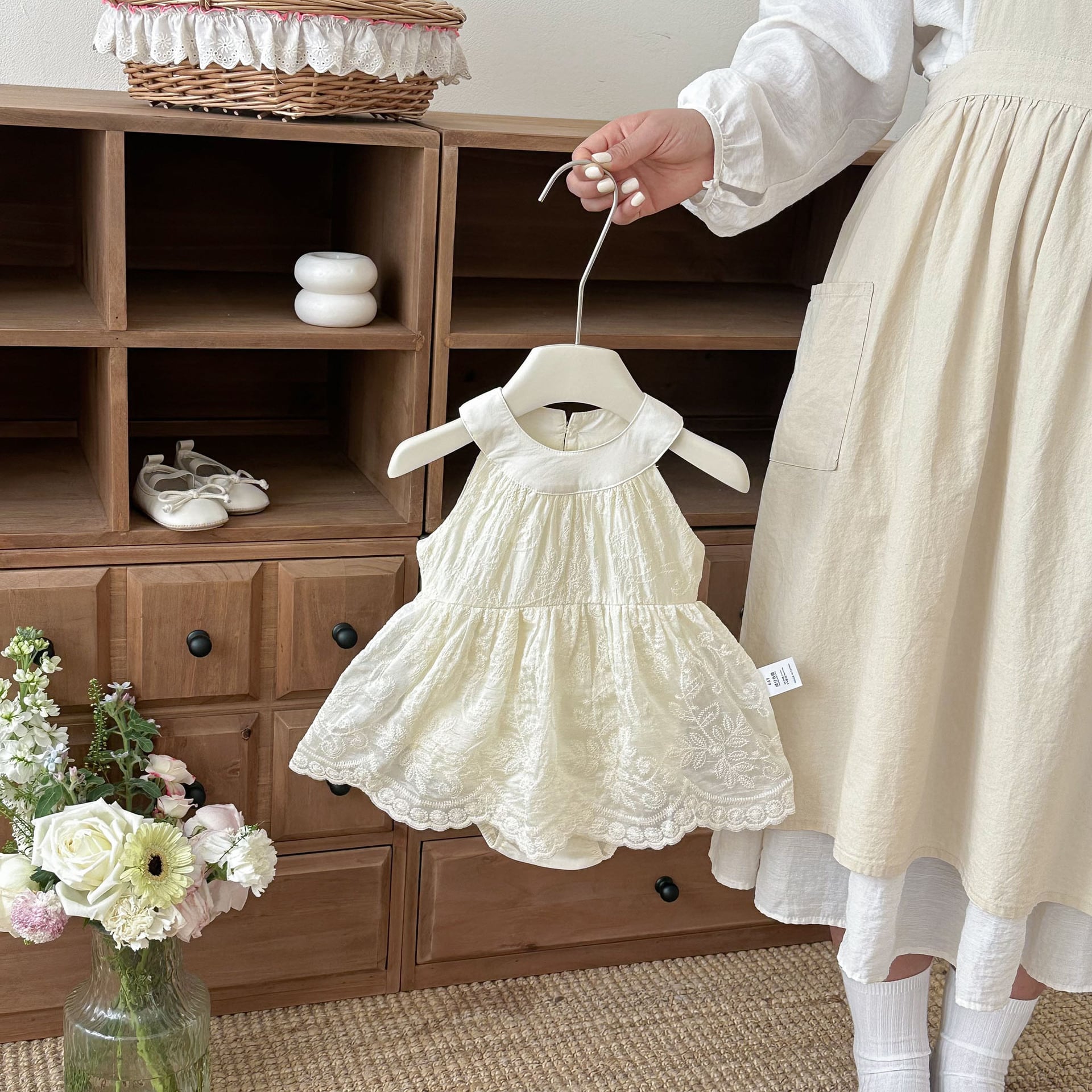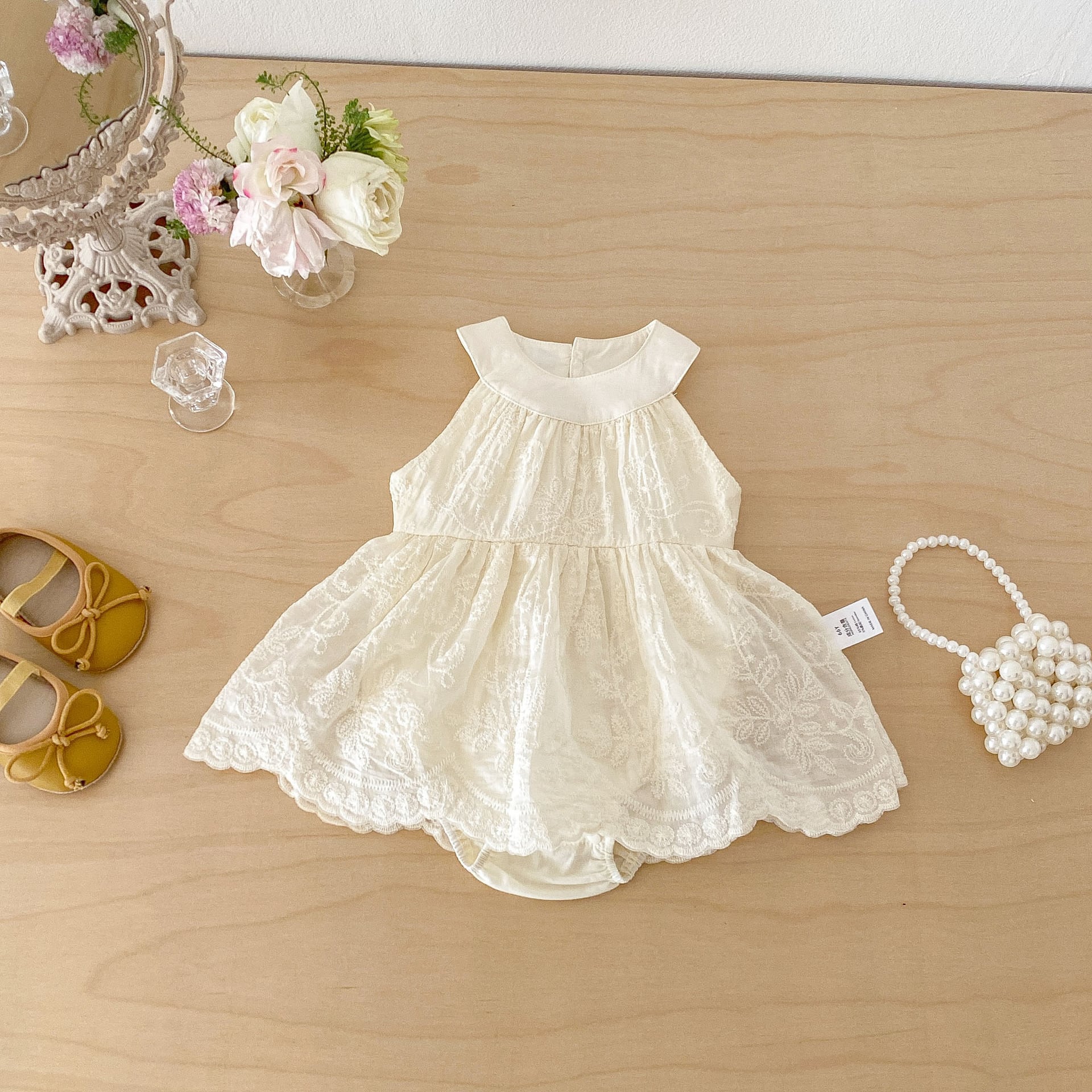 【BABY】ノースリーブクリームロンパース