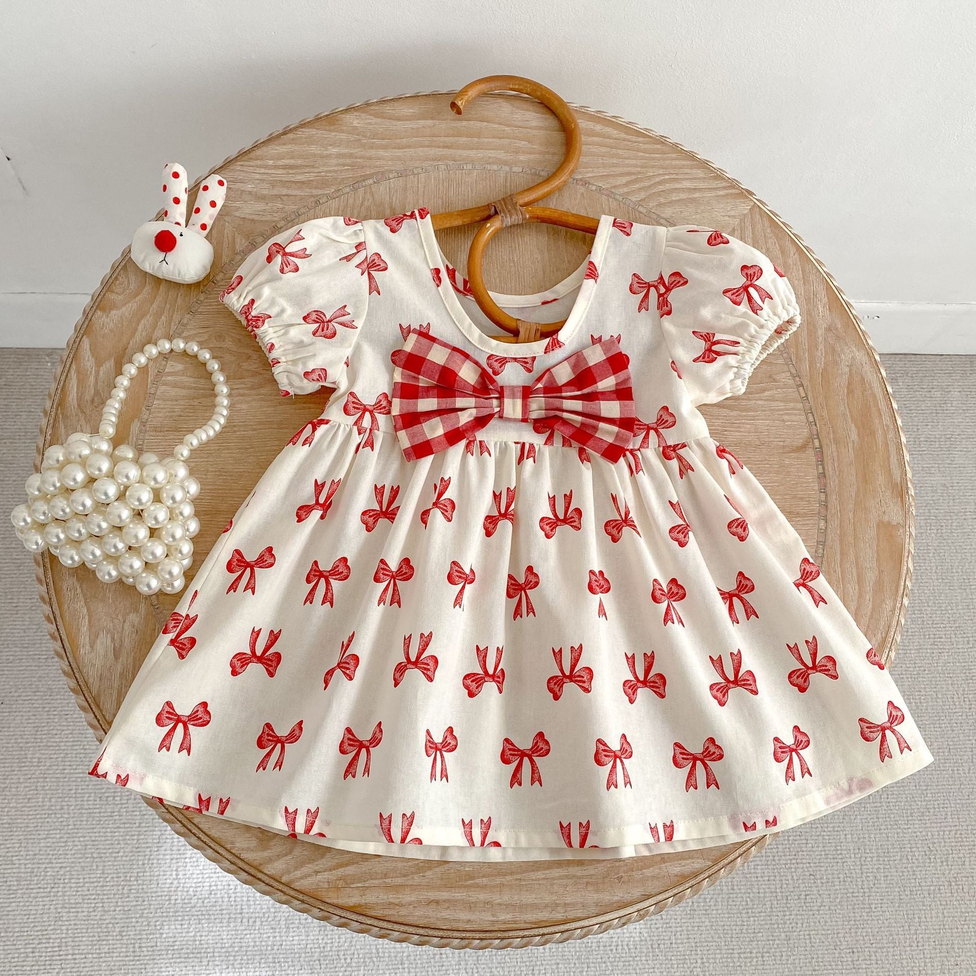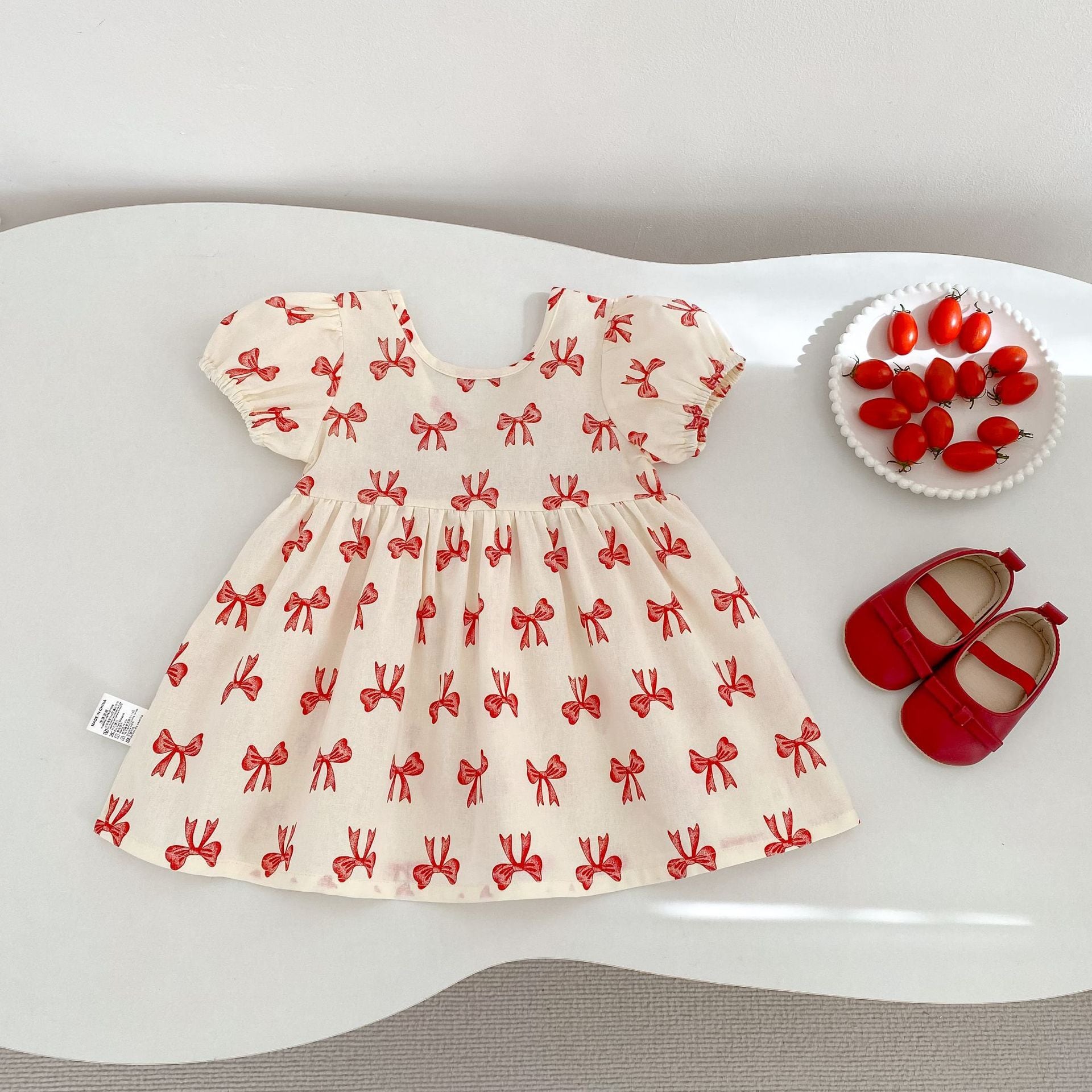 【BABY&KID】レッド蝶結び柄ワンピース