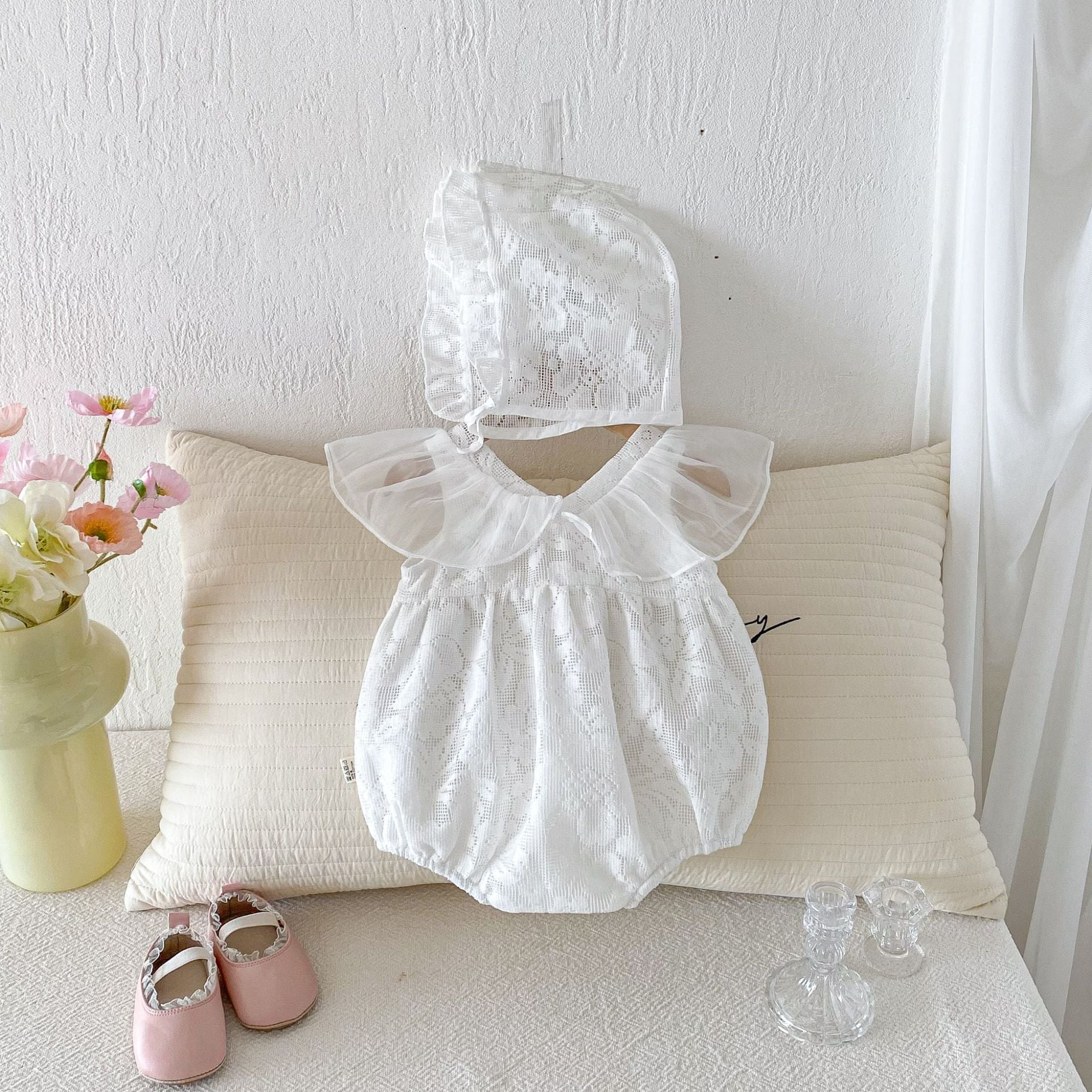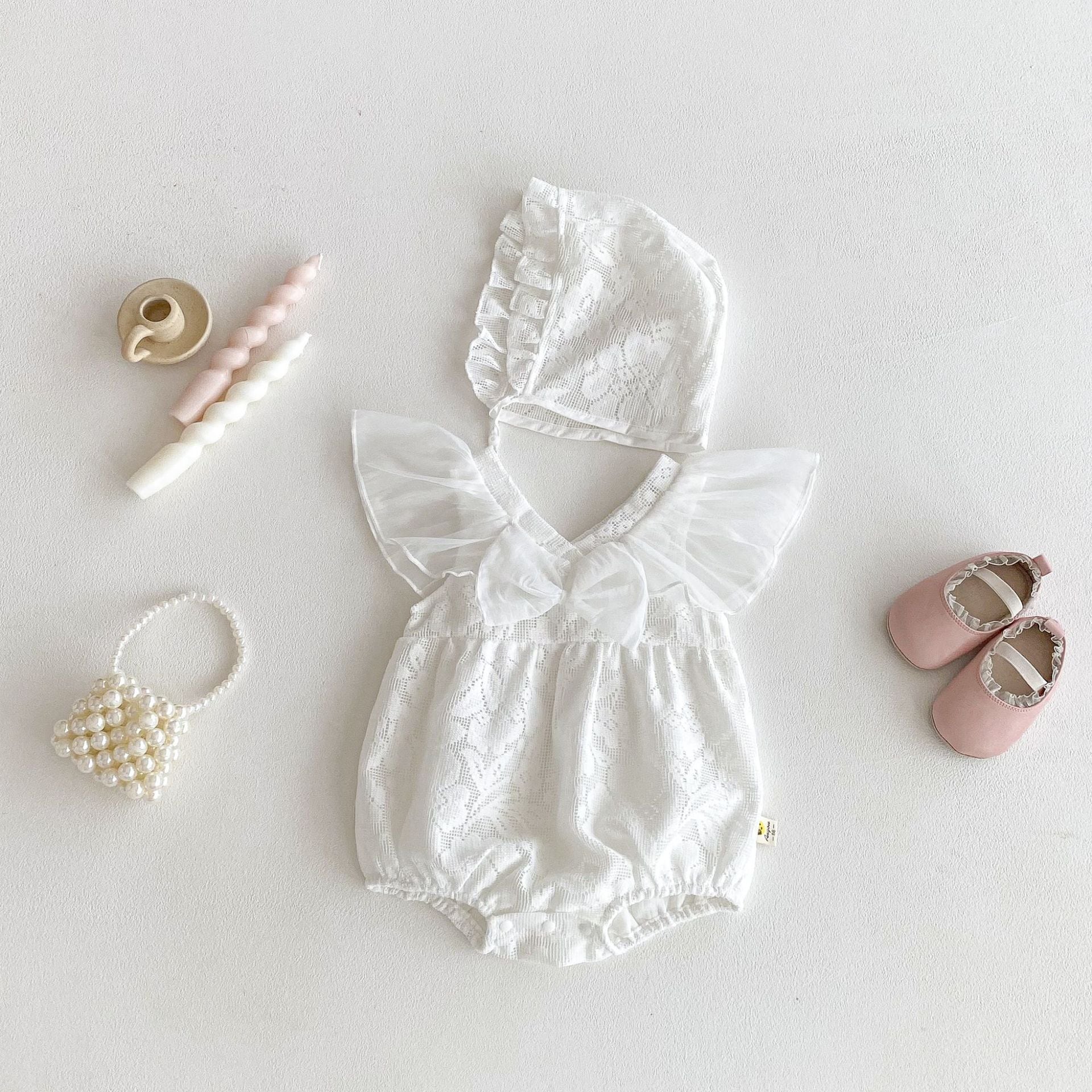• 【BABY】レースクリームロンパース