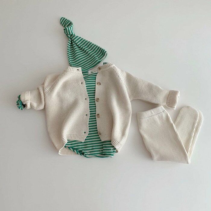 ★メイン素材:コットン ★サイズ:66 73 80 90 cm ★カラー:グリーン、ブラウン ★カーデガンはこちら: https://www.betty-official.com/items/54733527 【注意事項】 皆様に安心してお買い物をいただけますよう、『 利用規約 』を設けております。必ず目を通して頂いてからご購入をお願い致します https://www.betty-official.com/blog/2021/11/04/110131 配送は海外から行っております。お時間に余裕をもってご注文下さいませ。(平均発送目安:3-14日間程度) 複数購入の場合、どちらかが在庫切れになった場合でも不良品または在庫切れ以外の商品のキャンセル・返金は出来かねますのでご了承下さい。 お取り寄せ先の状況によっては、在庫を確保できない場合がございますので予めご了承ください。 当オンラインショップでは海外より取り寄せ配送を行なっております。 Instagram betty_______official 弊店のInstagram accountをフォローして頂ければ、 お得な情報やクーポンを定期的に配信させて頂きます。 1回のご注文金額の合計が7500円(税込)以上で、配送料は無料になります。 (配送先は一箇所につき同一日・沖縄県は対象外) ※7500円以上ご購入する場合は、沖縄への配送は、送料を無料しなくて1600円(税込)とさせていただきます。下記のリンクまで追加送料をご注文お願い致します。 https://www.betty-official.com/items/56683813 追加の送料をご注文しない場合は、商品を発送致しません。 予めご了承ください。