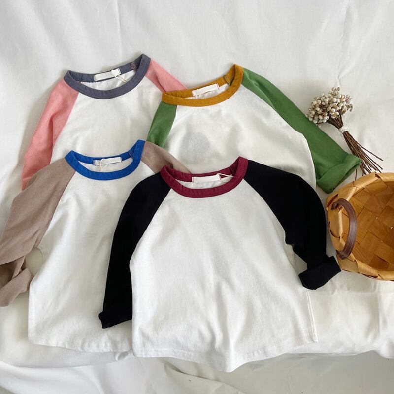 ★メイン素材:コットン ★サイズ:80 90 100 110 120 130 ★カラー:ブラック、グレー、ピンク、グリーン 何にでも合わせやすいラグランT 首元のパイピングが違う色になっているのがオシャレポイント!! デイリーユースのローテーションにあると便利な1着です サイズ 着丈 身幅 80 34 31 90 37 33 100 40 34 110 43 38 120 45 40 130 48 41 【注意事項】 皆様に安心してお買い物をいただけますよう、『 利用規約 』を設けております。必ず目を通して頂いてからご購入をお願い致します https://www.betty-official.com/blog/2021/11/04/110131 配送は海外から行っております。お時間に余裕をもってご注文下さいませ。(平均発送目安:3-14日間程度) 複数購入の場合、どちらかが在庫切れになった場合でも不良品または在庫切れ以外の商品のキャンセル・返金は出来かねますのでご了承下さい。 お取り寄せ先の状況によっては、在庫を確保できない場合がございますので予めご了承ください。 当オンラインショップでは海外より取り寄せ配送を行なっております。 Instagram betty_______official 弊店のInstagram accountをフォローして頂ければ、 お得な情報やクーポンを定期的に配信させて頂きます。 1回のご注文金額の合計が7500円(税込)以上で、配送料は無料になります。 (配送先は一箇所につき同一日・沖縄県は対象外) ※7500円以上ご購入する場合は、沖縄への配送は、送料を無料しなくて1600円(税込)とさせていただきます。下記のリンクまで追加送料をご注文お願い致します。 https://www.betty-official.com/items/56683813 追加の送料をご注文しない場合は、商品を発送致しません。 予めご了承ください。