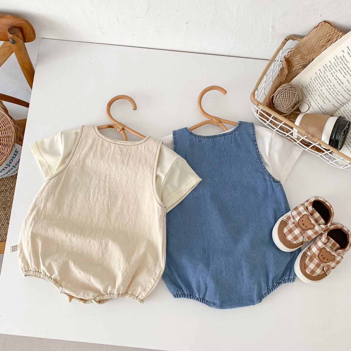 ★サイズ:66/73/80/90cm ★カラー:ブルー、ベージュ ★お揃いTシャツ追加:商品オプション追加1000円お願いいたします。 【注意事項】 皆様に安心してお買い物をいただけますよう、『 利用規約 』を設けております。必ず目を通して頂いてからご購入をお願い致します https://www.betty-official.com/blog/2021/11/04/110131 配送は海外から行っております。お時間に余裕をもってご注文下さいませ。(平均発送目安:3-14日間程度) 複数購入の場合、どちらかが在庫切れになった場合でも不良品または在庫切れ以外の商品のキャンセル・返金は出来かねますのでご了承下さい。 お取り寄せ先の状況によっては、在庫を確保できない場合がございますので予めご了承ください。 当オンラインショップでは海外より取り寄せ配送を行なっております。 Instagram betty_______official 弊店のInstagram accountをフォローして頂ければ、 お得な情報やクーポンを定期的に配信させて頂きます。 1回のご注文金額の合計が7500円(税込)以上で、配送料は無料になります。 (配送先は一箇所につき同一日・沖縄県は対象外) ※7500円以上ご購入する場合は、沖縄への配送は、送料を無料しなくて1600円(税込)とさせていただきます。下記のリンクまで追加送料をご注文お願い致します。 https://www.betty-official.com/items/56683813 追加の送料をご注文しない場合は、商品を発送致しません。 予めご了承ください。