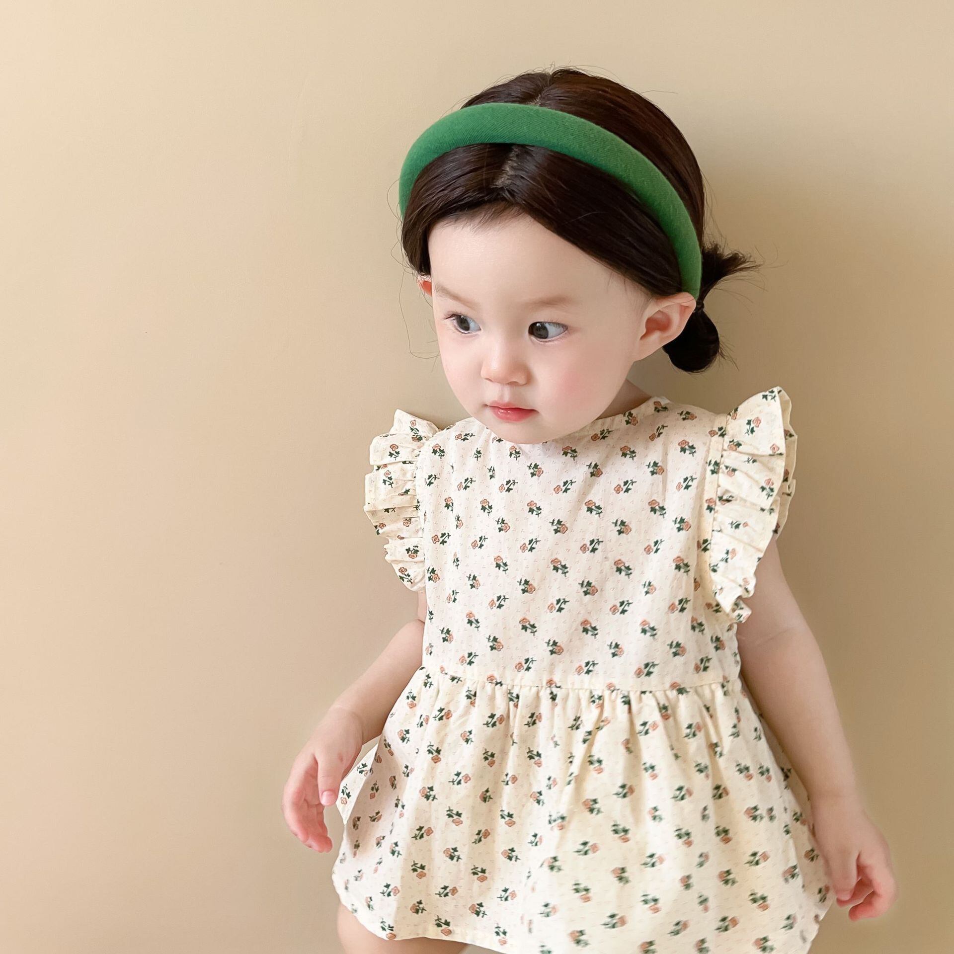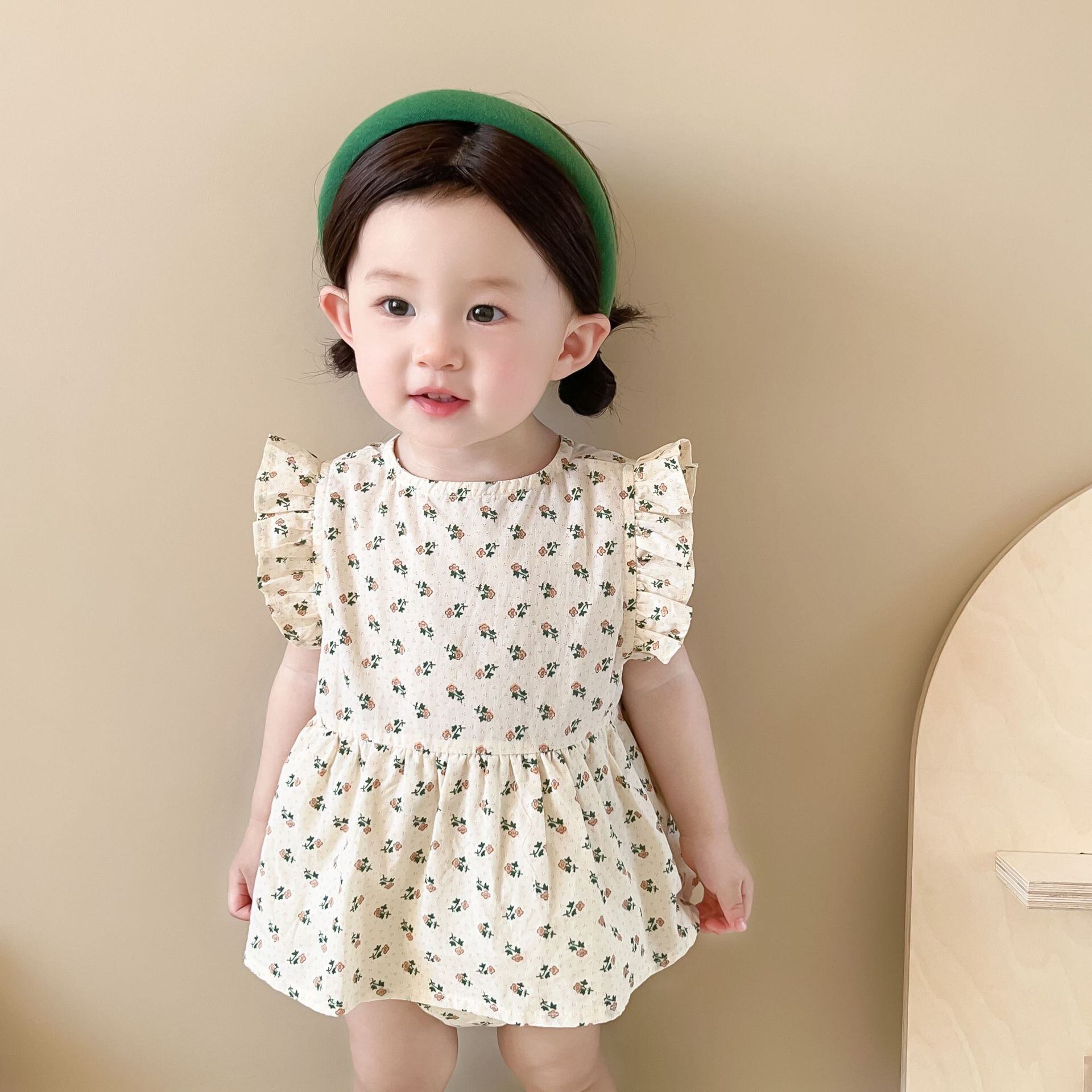 【BABY】フリルフラワーロンパース