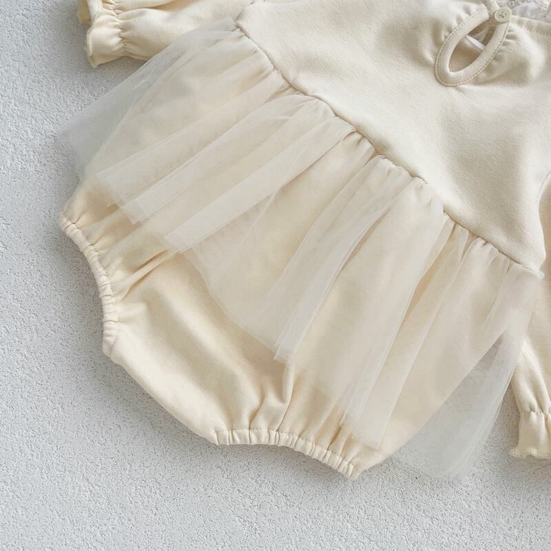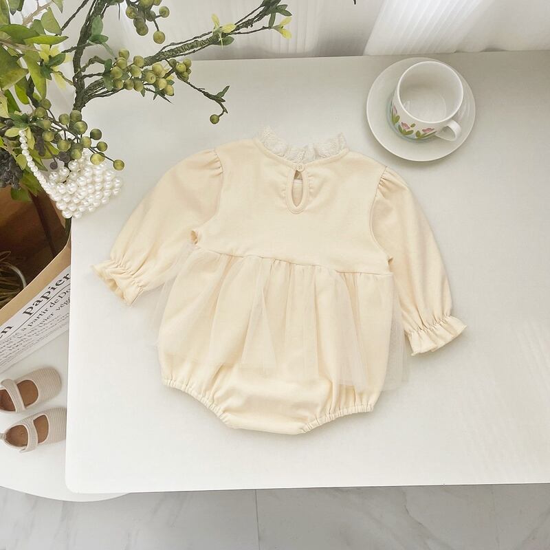 【BABY】フリルレース長袖ロンパース