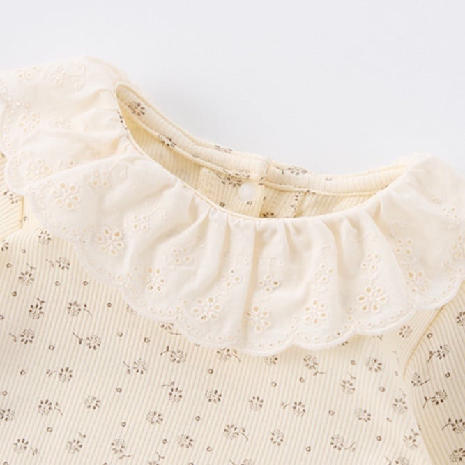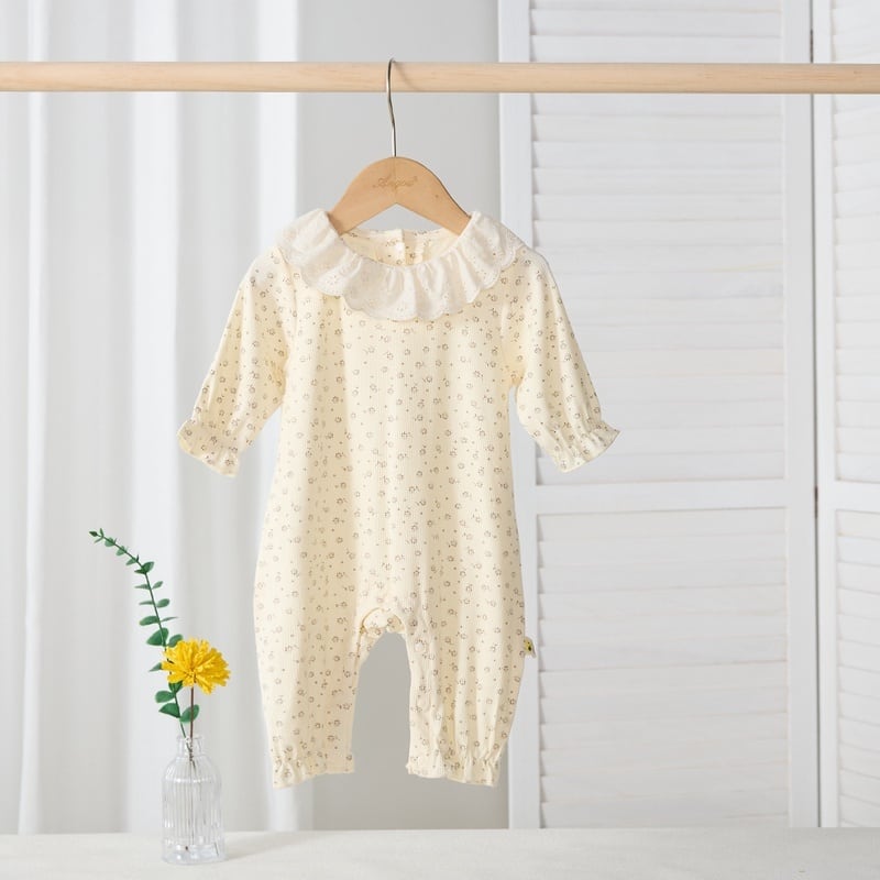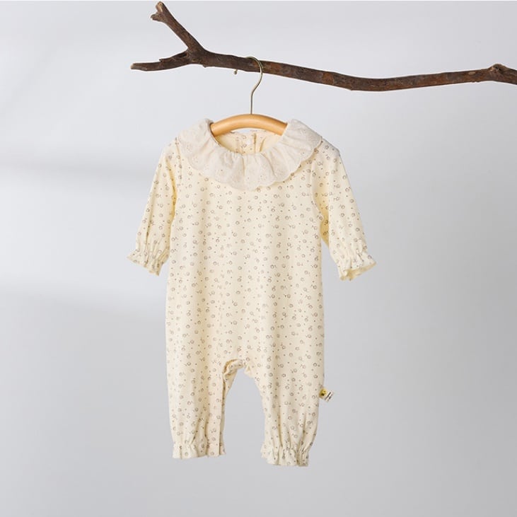 【BABY】フリル襟総柄ロンパース
